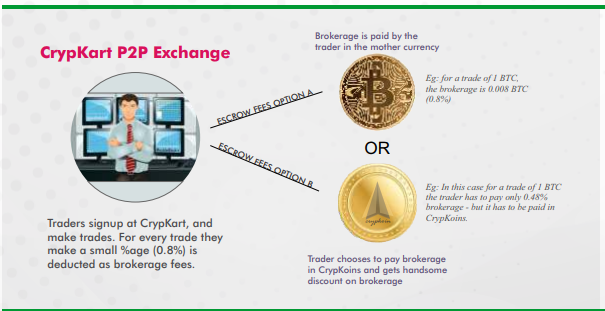 A trader saves money by paying in CrypKoins. CrypKoins can only be bought from our site. We plan to sell each CrypKoin at 0.1$ rate