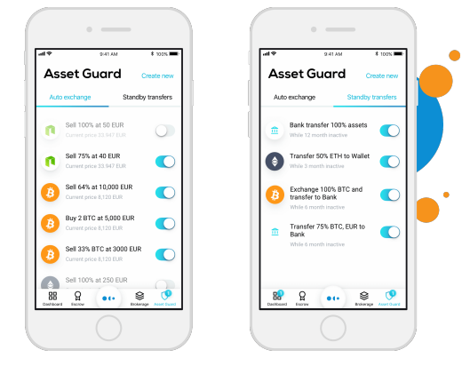 Platio Asset Guard là sản phẩm dựa trên hợp đồng thông minh để bảo vệ tất cả các loại tài sản của người dùng được lưu trữ trong Hệ sinh thái Platio chống lại những tổn thất gây ra bởi sự biến động thị trường cao hoặc mất truy cập vào tài khoản. Asset Guard sẽ hỗ trợ hai loại hợp đồng thông minh: Auto Exchange và Standby Transfer. Theo các điều khoản của dịch vụ bảo vệ tài sản được thiết lập trong giao diện, một hợp đồng thông minh thích hợp được hình thành bởi ứng dụng Platio và được đồng bộ hóa với Blockchain Platio. Nếu một số điều kiện đặt trước nhất định được đáp ứng, quá trình sẽ khởi chạy ngay lập tức. Sử dụng Asset Guard làm giảm nhu cầu liên tục theo dõi thị trường hoặc lưu trữ cụm từ dự phòng của bạn để những người được ủy quyền có thể truy cập vào tài sản của bạn trong trường hợp khẩn cấp.