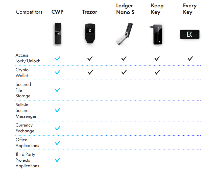 Size anlattıklarımdan da anladığınız gibi, CWP Micro-PC güçlü bir cüzdandan çok daha fazlasıdır. CWP Micro-PC kullanıcılarına çok sayıda ek araç ve işlevler sunabilecek oldukça küçük taşınabilir bir bilgisayar türü desek yanlış olmaz. Çok sayıda para birimli cüzdanı çeşitli ticaret platformlarına erişime sahip olduğunuzda kolayca kurabilir veya kendi takdirinize göre diğer uygulamalarınızı da yapılandırabilirsiniz. Böylece, CWP Micro-PC'nin yardımıyla tüm verilerinizi istediğiniz zaman ve istediğiniz yerde kullanabileceksiniz. Çünkü tüm uygulama aktiviteleri izole edilmiş yazılım alanının güvenilir bir şekilde korunması altında gerçekleşecektir. Aynı zamanda, CWP Micro-PC'nin rakiplerine göre bir çok avantajı bulunmakta, bunlar hakkında aşağıdaki görsele bakarak bilgi edinmiş olabilirsiniz.