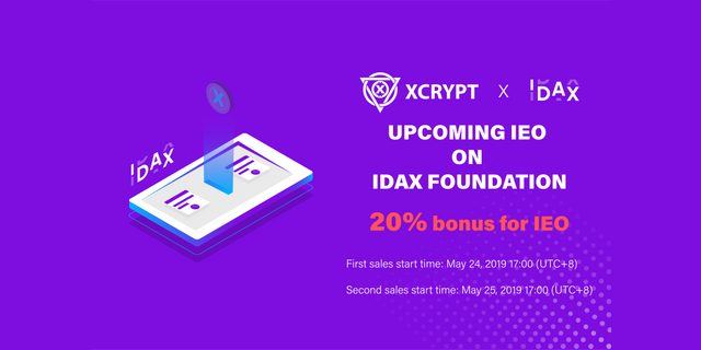 As for now, the XCrypt token sale is still in its private stage, however, once the private sale ends on the 24th of May, the token will be publicly for sale in the XCrypt Initial Exchange Offering (IEO) on IDAX. During the first phase of the IEO on IDAX, investors will receive a 20% bonus on their token purchase. XCT tokens for sale in the IEO can be bought with Ethereum.