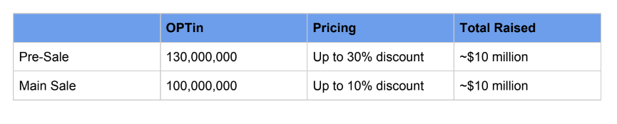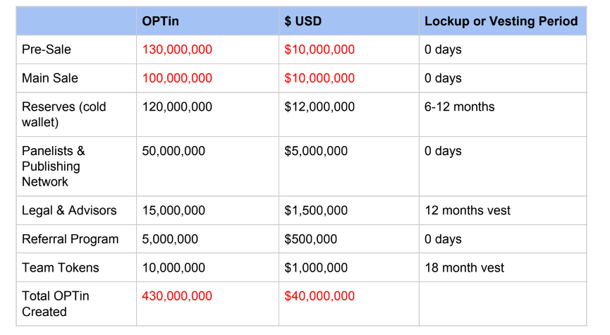 Main Sale: 100,000,000 OPTin (=$10,000,000)