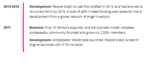 Development: People Graph AI was first drafted in 2014, and had evolved to its current form by 2016. A total of $3M in seed funding was raised for the AI development from a global network of angel investors.