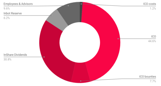 There will be a maximum of 13 billion InTokens. Up to 5.8 billion InTokens are available for public. Out of this, 2 billion are reserved for existing Inbot, Inc. shareholders, who will forfeit their shares in the process. Inbot Oü is the governing body of InToken. A reserve of 800 million tokens will be allocated for liquidity, which will be managed with Bancor protocol. We have reserved another 1.25 billion tokens for long term team and advisor compensation, and 150 million tokens for the token sale costs.