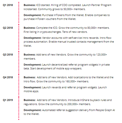 Business: Add tens of new Vendors. Introduce InShare buyback rules and regulations. Grow the community to 200,000+ members.