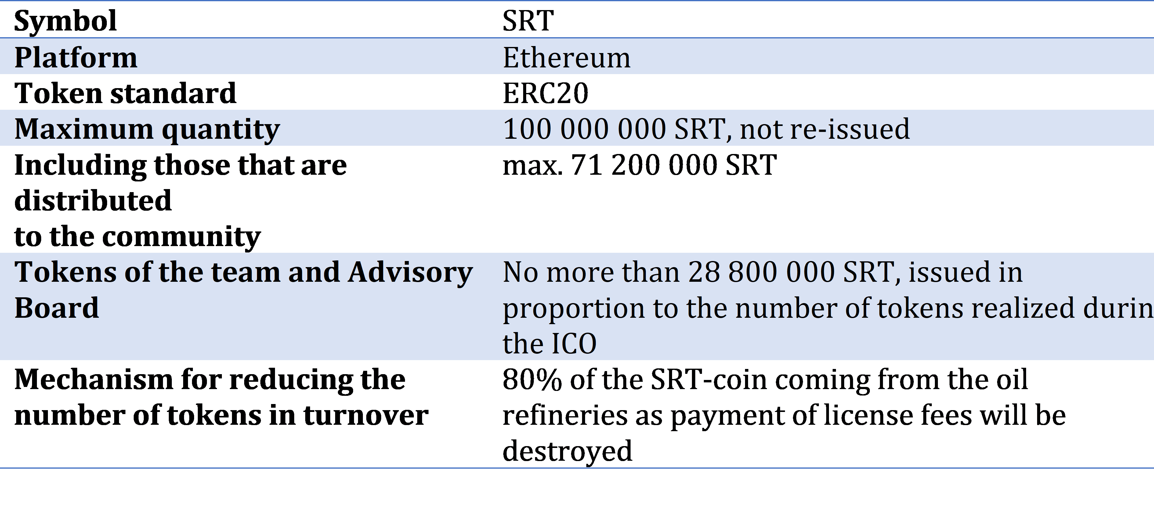 - The possibility of supporting the development of blockchain community and participation in the development of SRT blockchain platform.