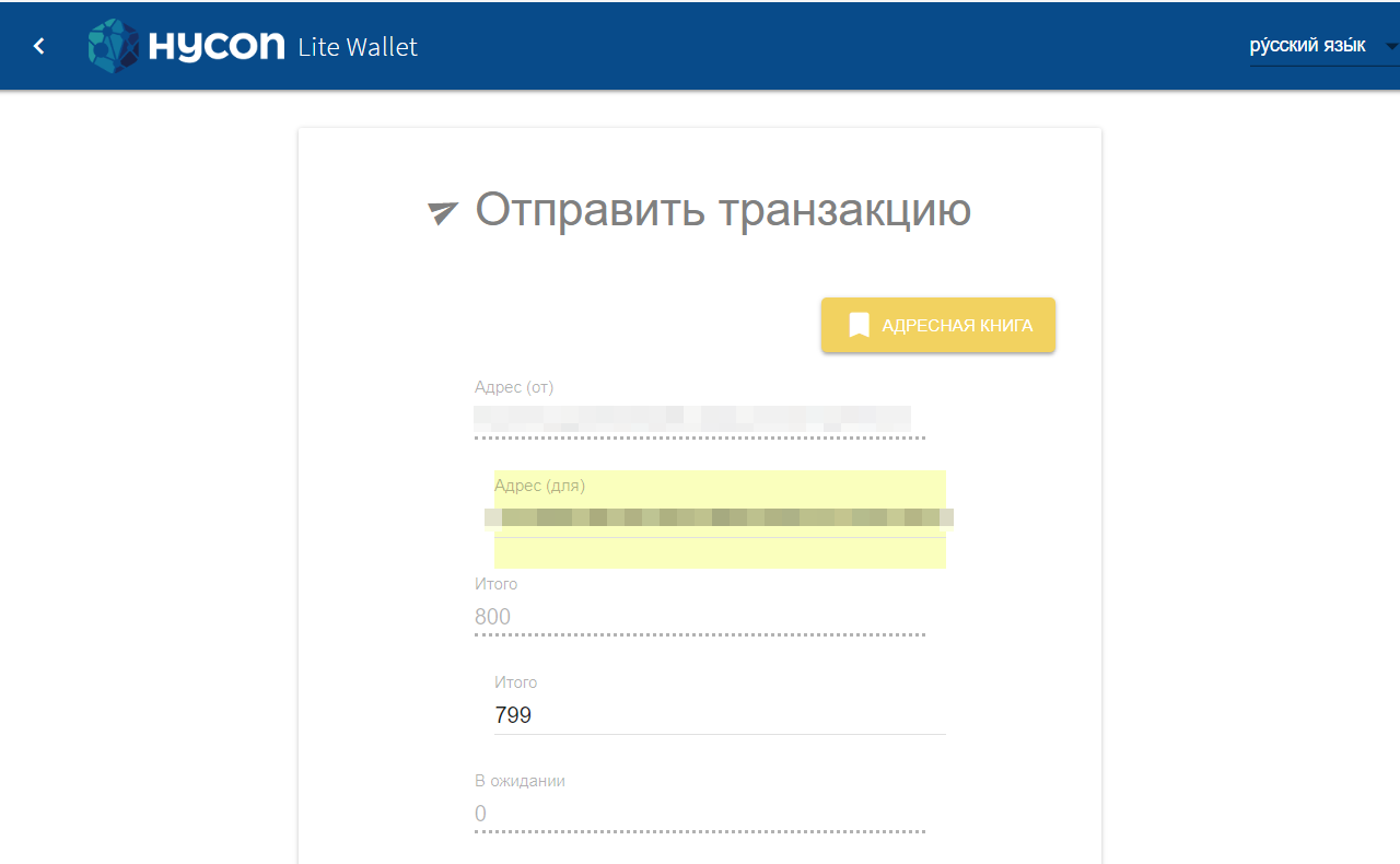 Сначала заходим в свой кошелек, выбираем трансфер. в "Адрес (для)" вводим адрес, куда будем переводить криптовалюту. Не забудьте указать сборы - это размер комиссии, 1 достаточно. Также обратите внимание, чтобы на вашем кошельке была нужная сумма - если переводите 5000 и комиссия составляет 1, то на кошельке должно быть не менее 5001, иначе система выдаст ошибку.