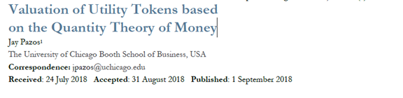 然而针对拟ICO项目,主流的观点是参照基于货币平衡理论的费雪方程式估算加密货币的价值,这个观点的支持者包括Chris Burniske和Jay Pazos等。