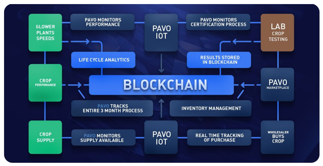PAVO is a solution for innovative blockchain IoT agricultural ecosystems globally. This platform allows farmers to make smarter, faster business data-based, real-time and agricultural decisions. The main features of this application is to provide manufacturers with the ability to analyze and adjust the technique of optimal growth and to measure and manage all aquaculture operations from anywhere in the world. In other words, farmers can plant crops in various locations around the world and still being able to control and adjust the Central on the conditions in their respective territories. PAVO allows farmers to record, report and analyze all their activities of cultivation planting and spray for shipping, and can even track the productivity and labor costs.