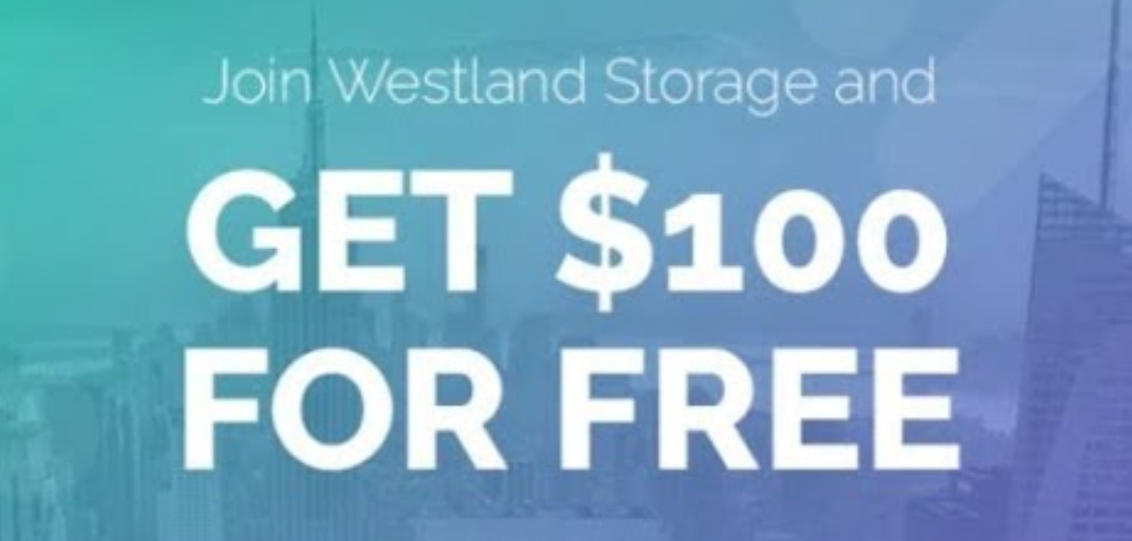 WestLand Storage & Prämienprogramm anmelden und Sie erhalten nur für das Anmelden $100