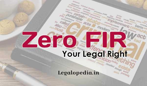 ZERO First Information Report (FIR) :- With the introduction of the concept of Zero FIR, filling of FIR in police station with appropriate jurisdiction is not necessary. When any women files FIR for the Cognizable offence in such Police station who doesn't have jurisdiction on the area of crime spot, then such FIR is known as Zero FIR. In other words, FIR can be filed in any police station (irrespective of jurisdiction/place of incident) and later same can be transferred to the appropriate Police Station. In Zero FIR no FIR number is given until the FIR is transferred to he appropriate Police Station. The signature of the complainant is necessary on the FIR whether it is zero FIR and must take a copy of it.