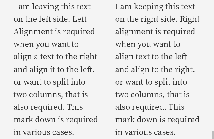 I am leaving this text on the left side. Left Alignment is required when you want to align a text to the right and align it to the left. or want to split into two columns, that is also required. This mark down is required in various cases.
