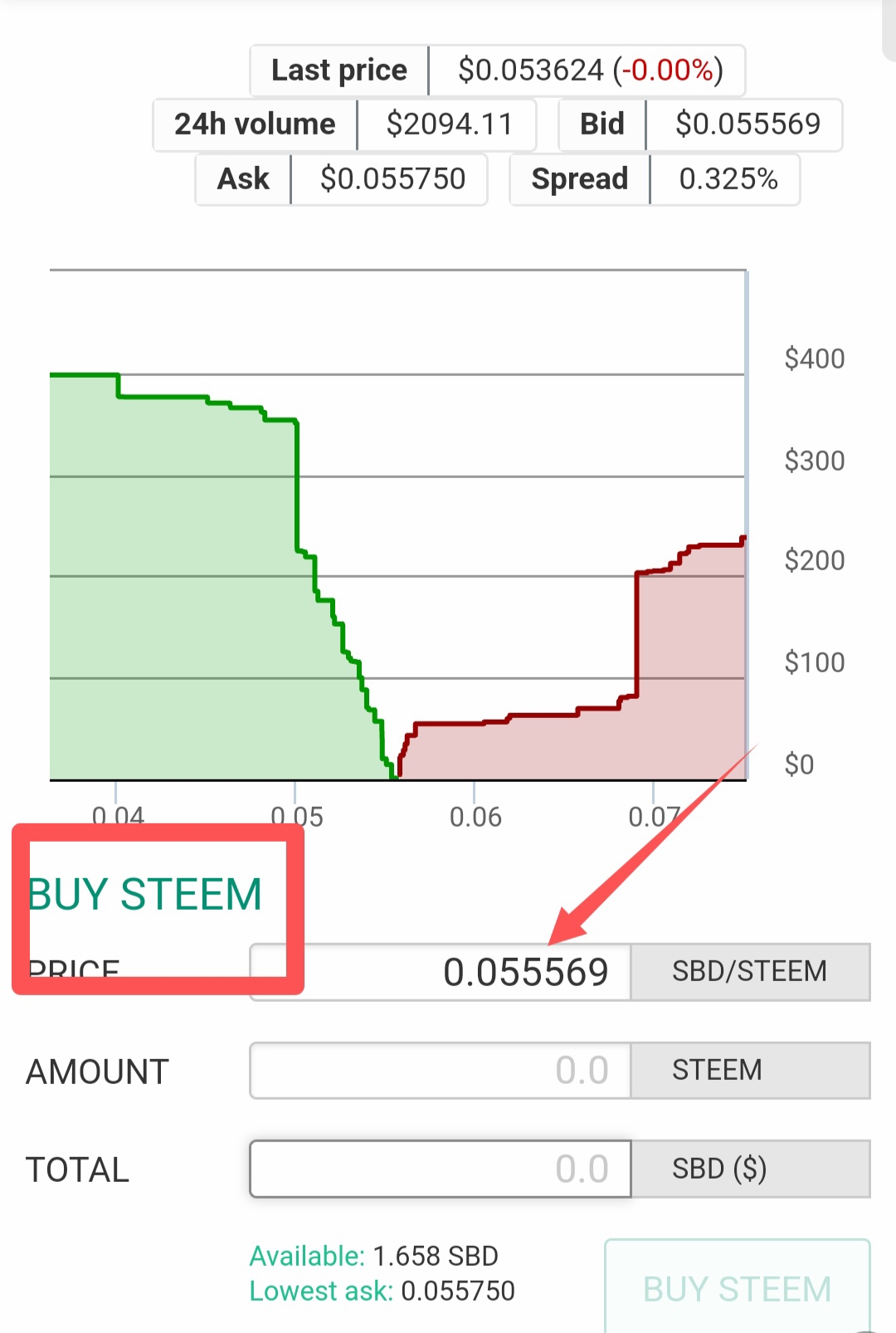 ➡️ আপনারা ছবিতে দেখতেই পাচ্ছেন যে SBD amount type করে বসানোর সাথে সাথেই amount এর ডান পাশের বক্সটা আর ফাঁকা নেই। অর্থাৎ আপনার wallet এ থাকা SBD টাইপ করে বসানোর সাথে সাথেই বাজার মূল্য অনুসারে একটা নির্দিষ্ট পরিমাণ সামনে দৃশ্যমান হবে।