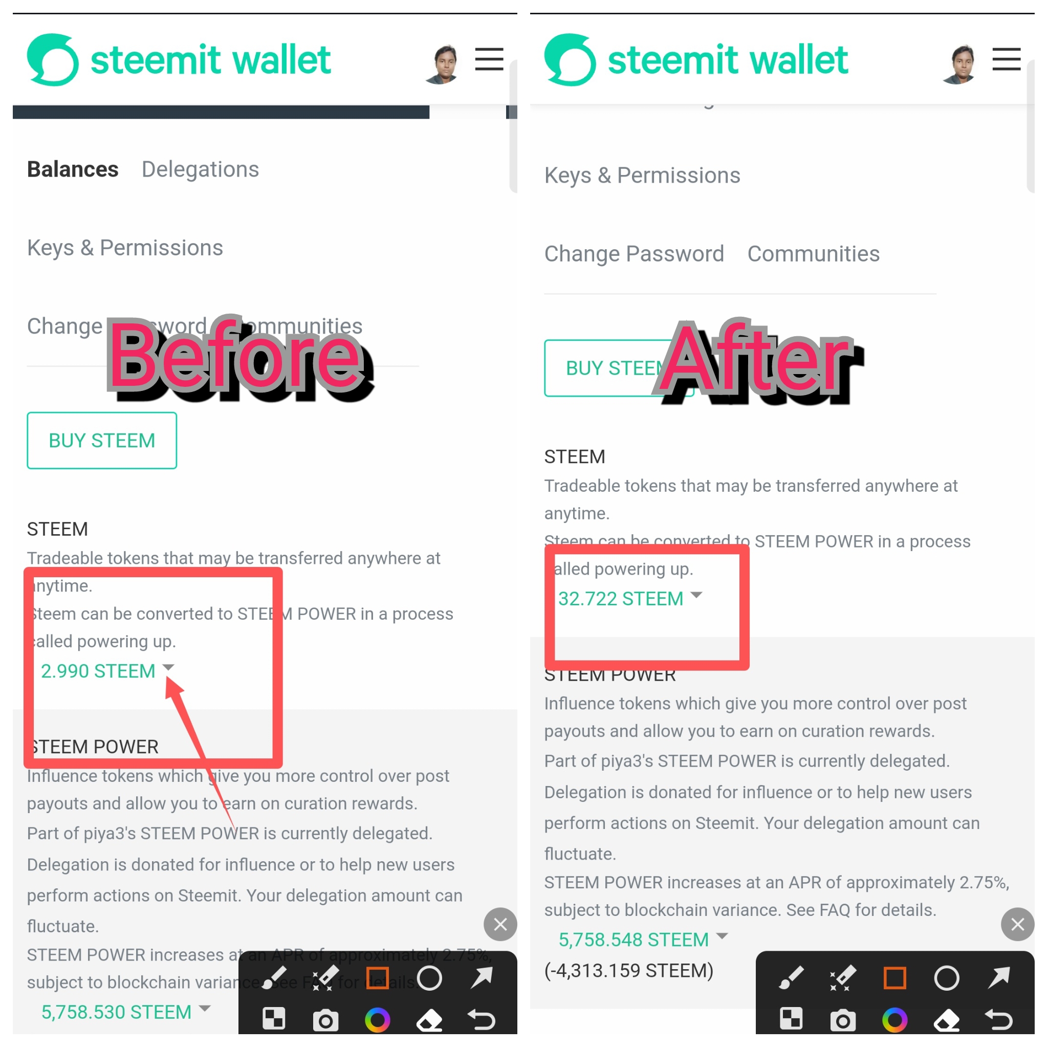 ➡️আমার wallet এর পূর্বের ব্যালান্স ও SBD থেকে STEEM Convert করার পরের ব্যালান্স দেখুন। Convert হতে মাঝেমধ্যে একটু বিলম্ব ও হতে পারে। তবে দুশ্চিন্তার কোনো কারণ নেই।