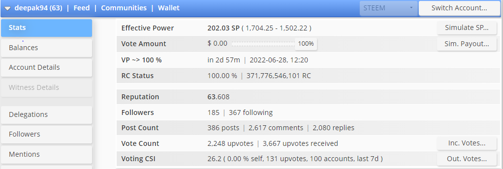 Amount of SP- Till now I have earned 1704.25 SP through this platform. In which I have never withdrawn nor powered down a single SP to date. Even though I have earned less SP than the rest of the people but I have good intentions which will help steemit to make strong. I delegate my 90% of SP to one and only Indian community to support and promote Indians.