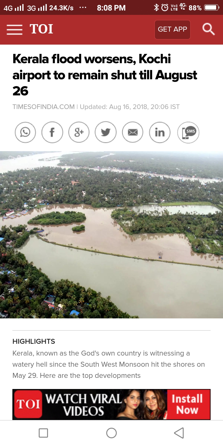 In India kerala state are currently struggling from flood problem around 300 people are die in kerala. Although a City of kerala is famous for turism. Currently kerala fighting with flood as Indian government already gives red alert for kerala many city.