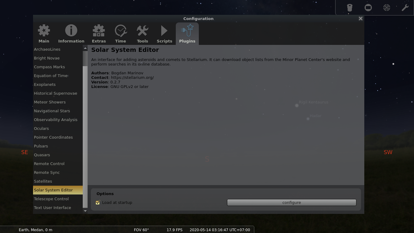 Di bagian tab "plugins", pilih Solar system editor.