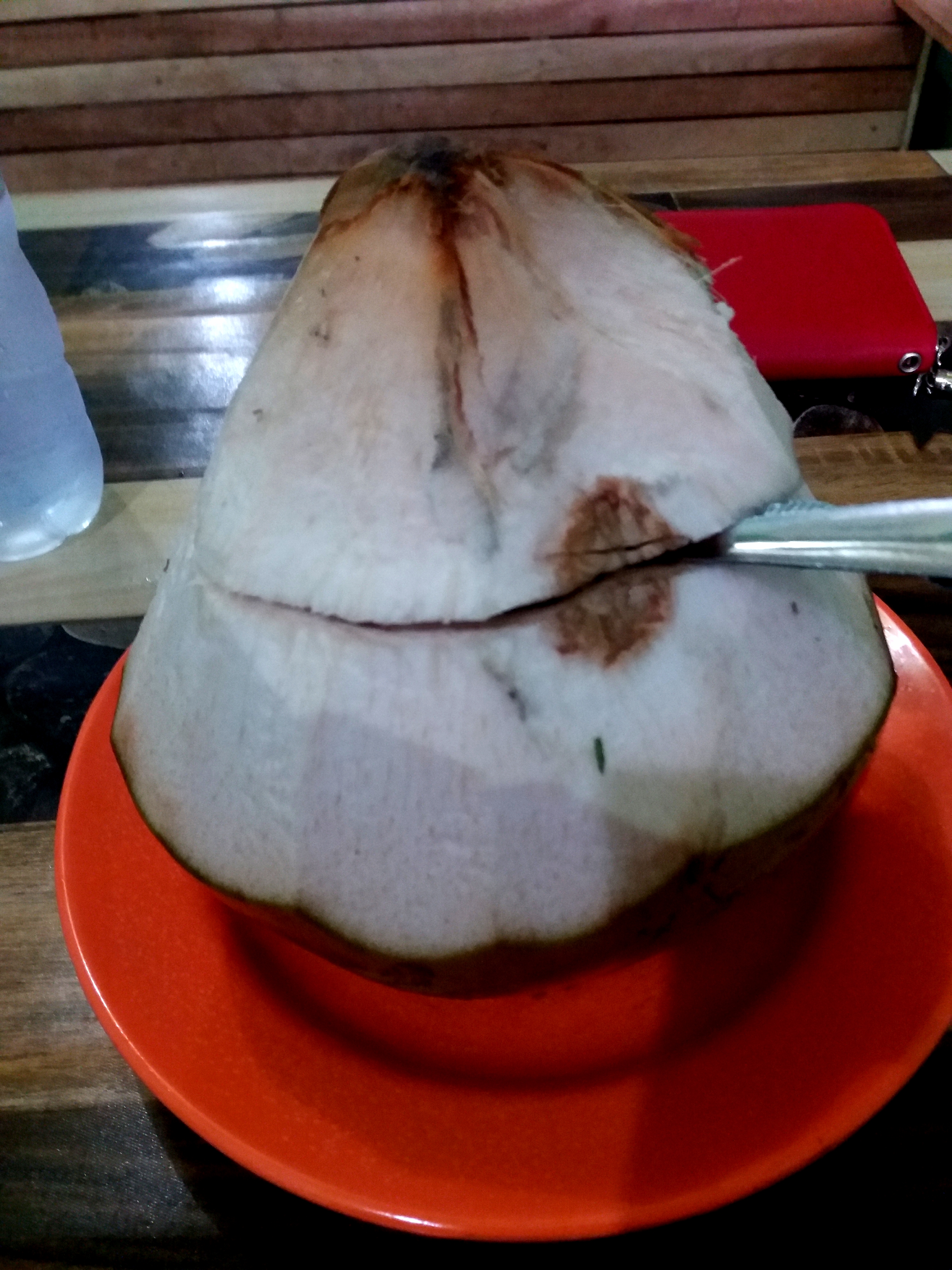 Namun kali ini saya sedang mencoba mencicipi bakso yang disuguhi dengan kuah dalam batok kelapa muda.