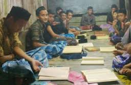 Gambar di atas merupakan gambar para santri sedang beut kitab di atas bale sumber internet