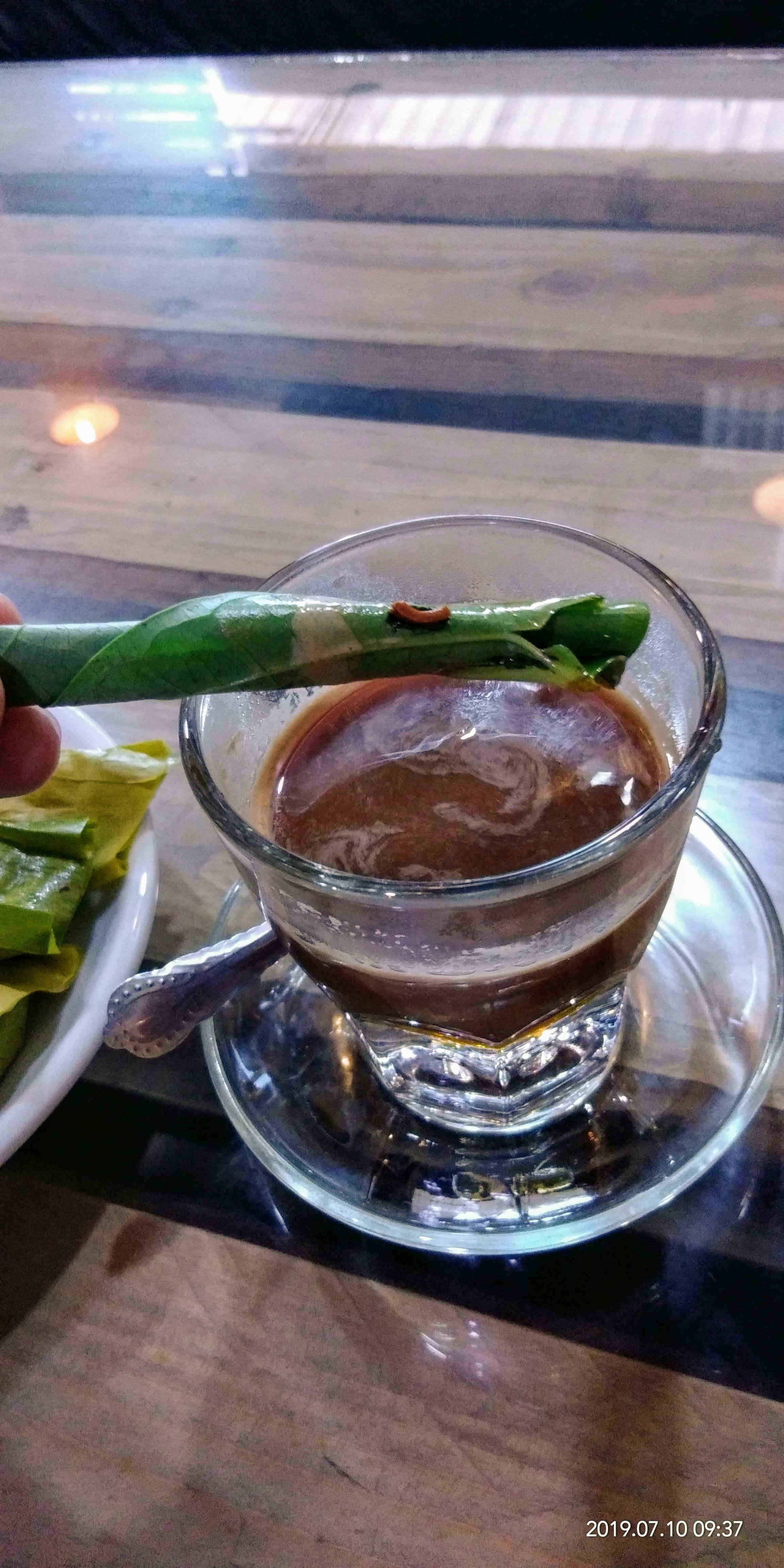 This morning I started by enjoying a special coffee one of the cafes in Langsa, namely Benu Cafe, the typical menu is Coffee Expresso Marwah Indatu (EMI) with 2 (two) portions available, namely, single and double at very affordable prices. According to those who have a cafe, EMI coffee is specially made for coffee enthusiasts but has a history of stomach acid. I tried this coffee because I was curious whether it was safe for people with stomach acid or just a trick to attract customers. After I tried a few times, indeed after drinking this coffee, it didn't feel that it affected the acid level of my stomach, unlike after I consumed other coffee menus. This caught my attention, what composition can make this coffee safe for people with stomach acid? The composition is coffee expresso, honey, then there is a stirrer made from cinnamon wrapped in betel leaves, but if there are other additions which are confidential, it seems to ask more questions to the coffee maker. Heheheheh ...