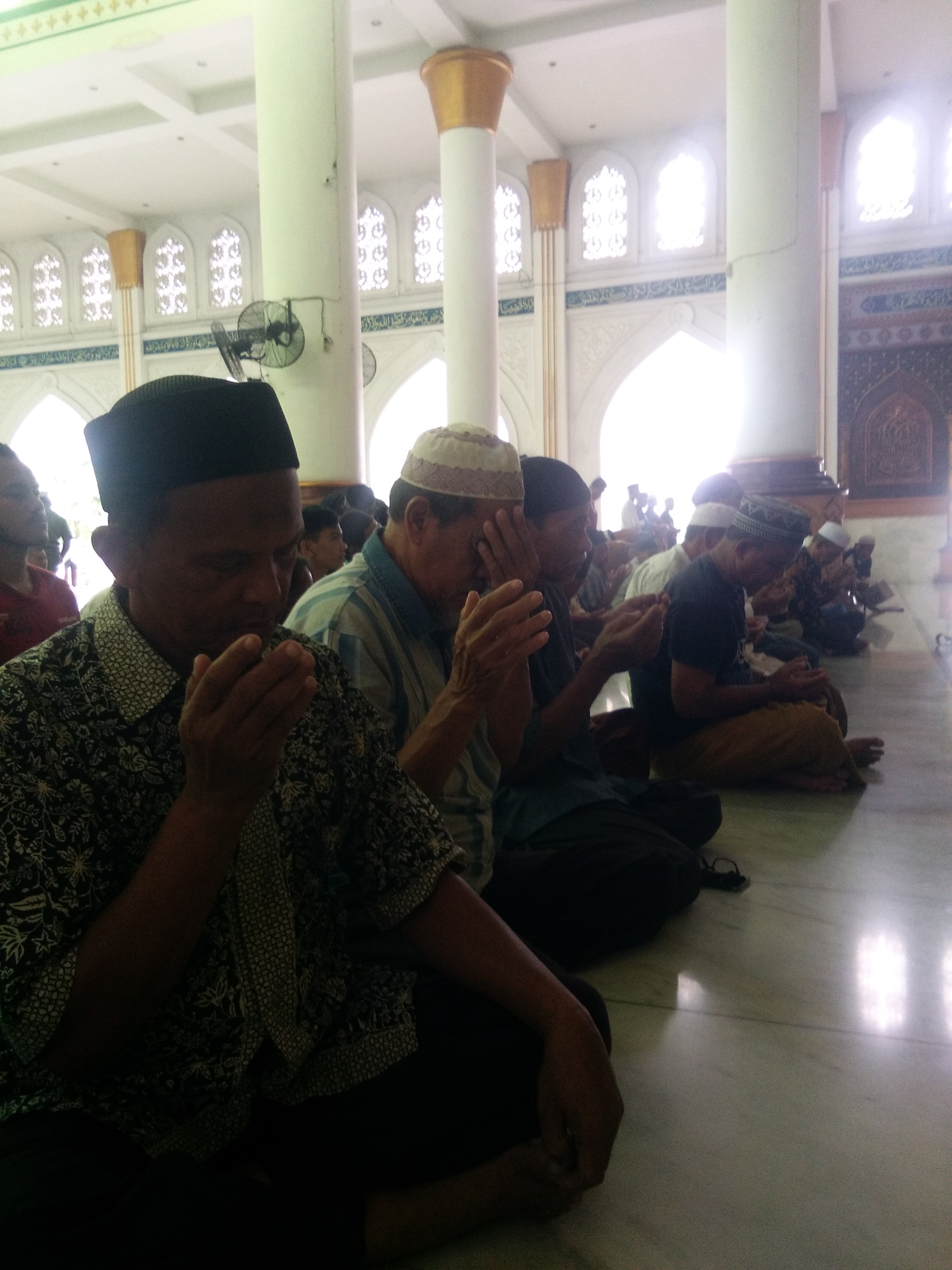 Tak tarasa azan zuhur pun terdengar dengan jelas dan nerdu,karena memang mesjid dengan tempat saya ngopi tidak terlalu Jauh.Lalu saya mohon pamit dari teman ngopi tadi, bergegas untuk pergi ke mesjid ingin malaksanakan shalat zuhur berjamaah.