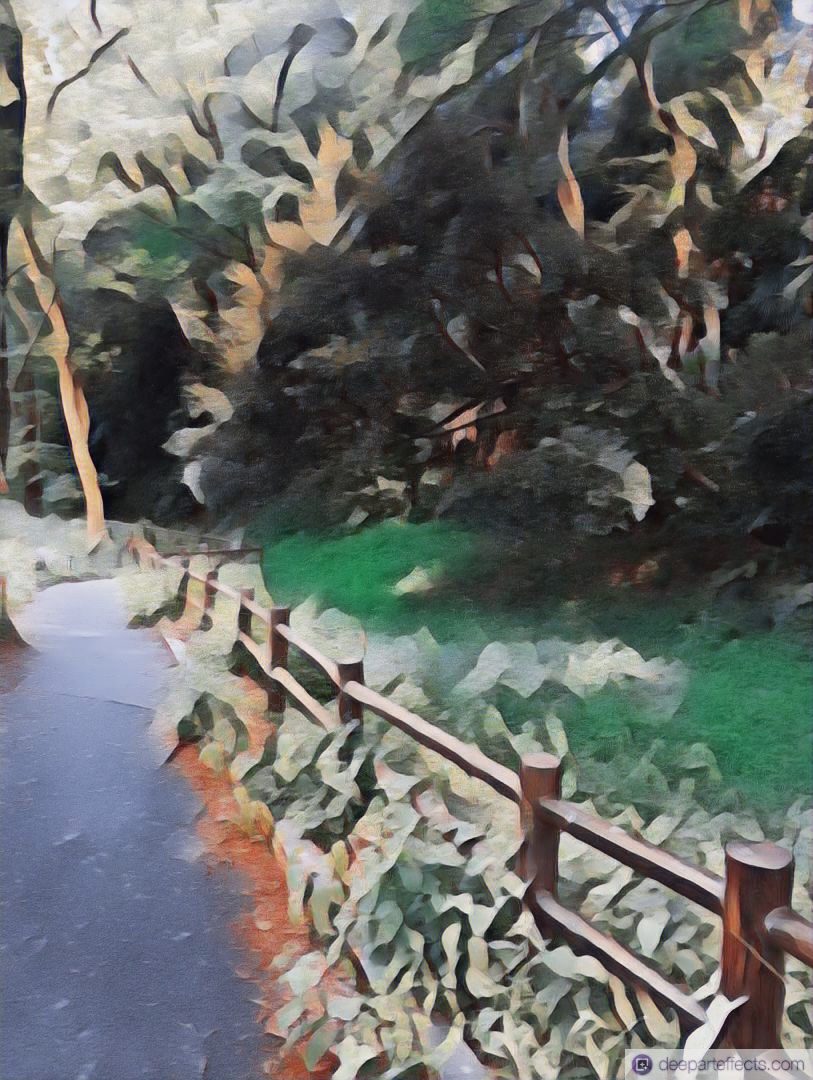 Kesunyian di hutan ini menjadi sangat mencekam ketika kicauan burung tiba-tiba berganti menjadi suara bisikan ribuan orang dalam bahasa yang tidak dimengerti. Pagar kayu di sepanjang jalan mulai retak dan mengeluarkan cairan hitam kental yang berbau karat besi. Kamu menyadari bahwa jalan ini tidak berujung; setiap kali melewati tikungan, kamu kembali ke titik yang sama, namun dengan pepohonan yang kini tumbuh lebih rapat dan mulai melilit pagar kayu tersebut seperti otot yang menegang.