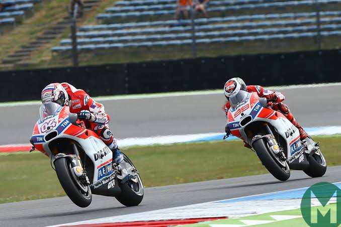 selamat sore para sahabatku sekalian, selamat berjumpa kembali bersama saya. Apa kabar anda semua, saya harap anda sehat selalu Dan semoga anda selalu dalam lindungan Allah SWT. Pada sore ini saya masih berbicara tentang seputar MotoGP, nampak nya dari pihak tim Ducati telah memperlihatkan kebangkitan mereka untuk meraih juara dunia MotoGP kali ini. Hal itu terbukti pada saat beberapa pekan ini tim Ducati selalu meraih podium pada laga MotoGP, kedua riders mereka seperti Dovisiozo dan Lorenzo juga memperlihatkan kemampuan mereka yang tidak boleh diragukan oleh tim Ducati