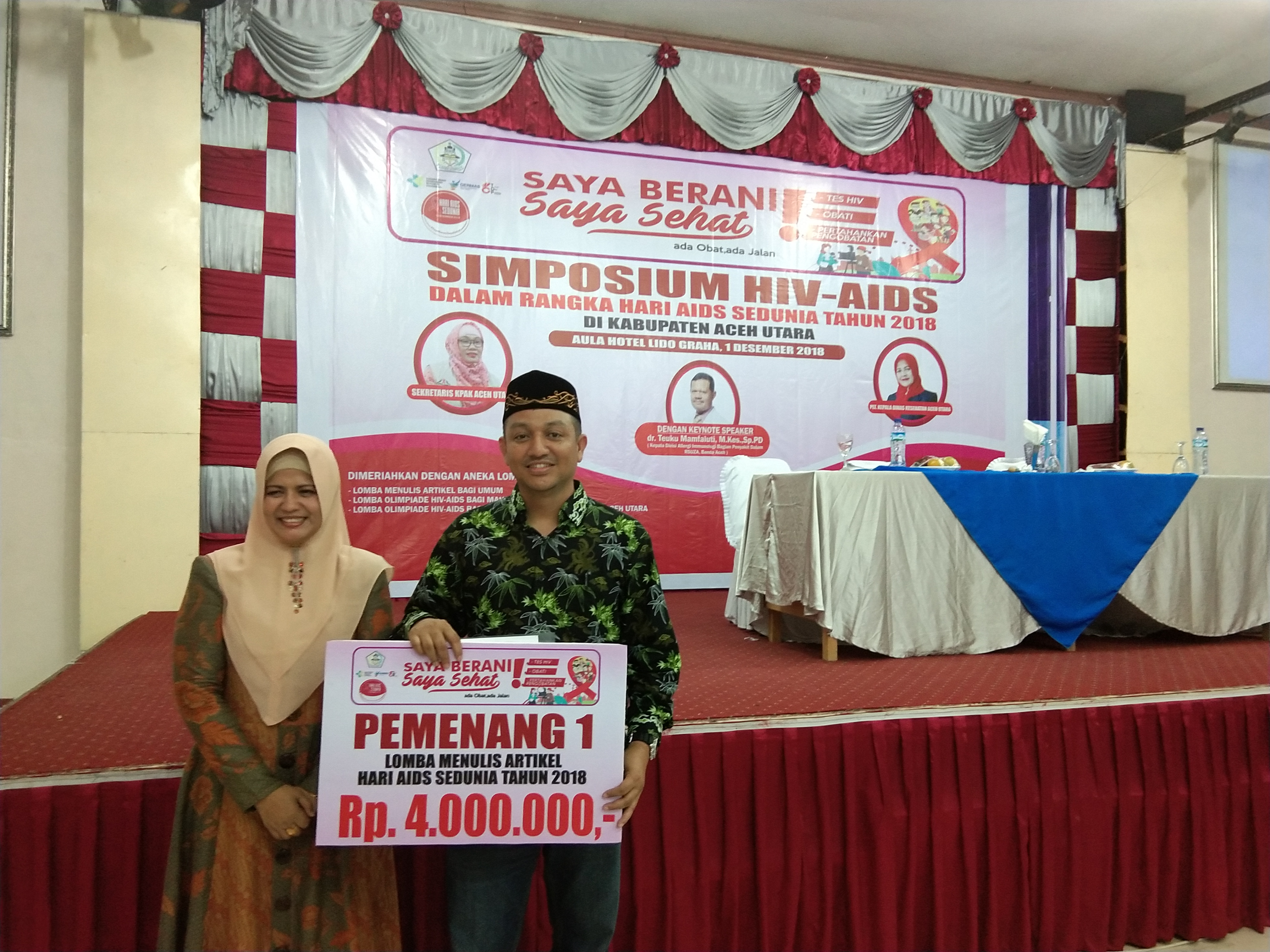 Setelah rapat di Sukma yang tidak sampai akhir diikuti, saya harus ke Hotel Lido Graha. Di sana sedang berlangsung puncak acara Hari HIV/AIDS sedunia yang dilaksanakan oleh Dinas Kesehatan Aceh Utara. Menurut panitia saya salah satu nominee lomba karya tulis.