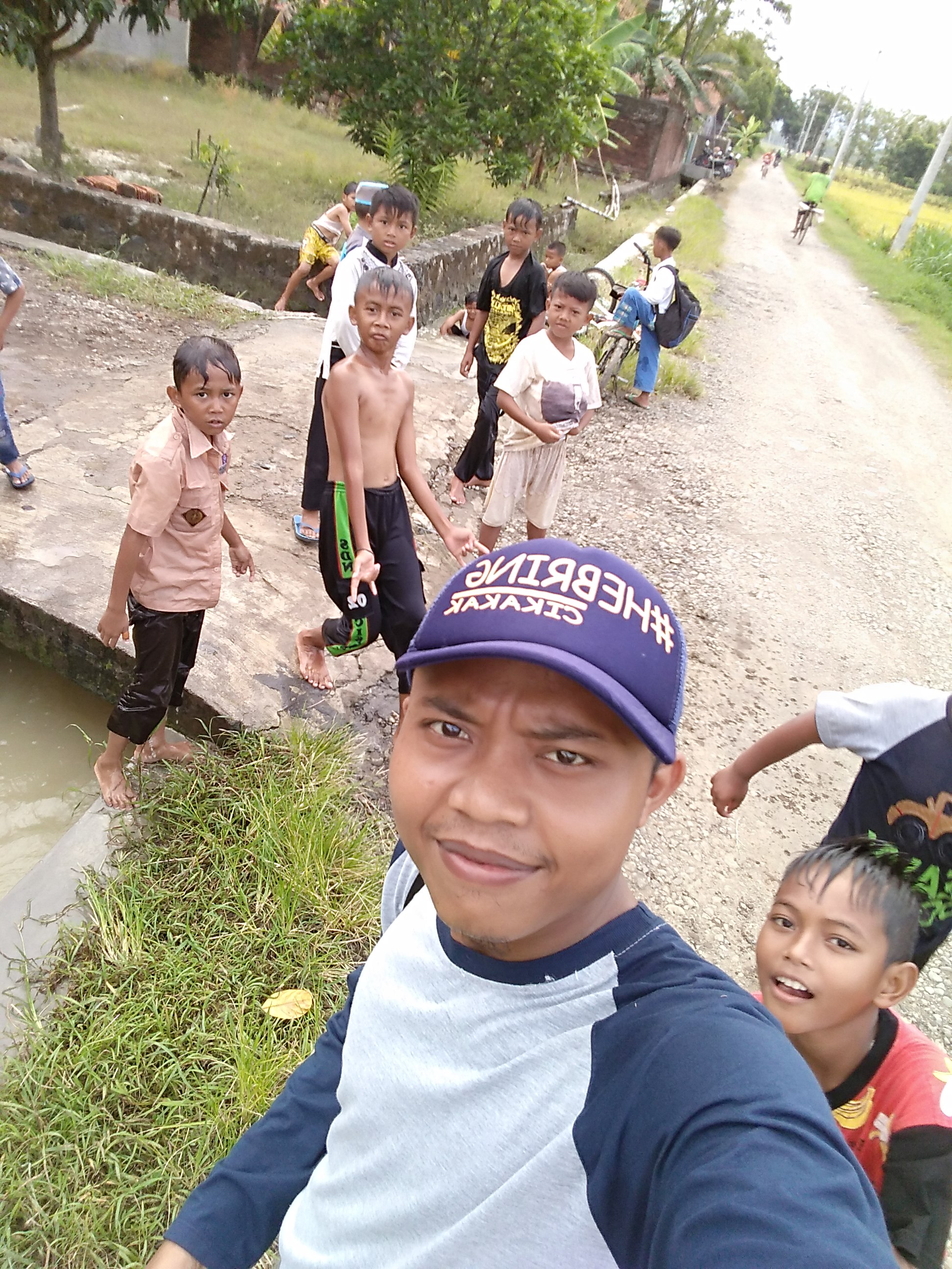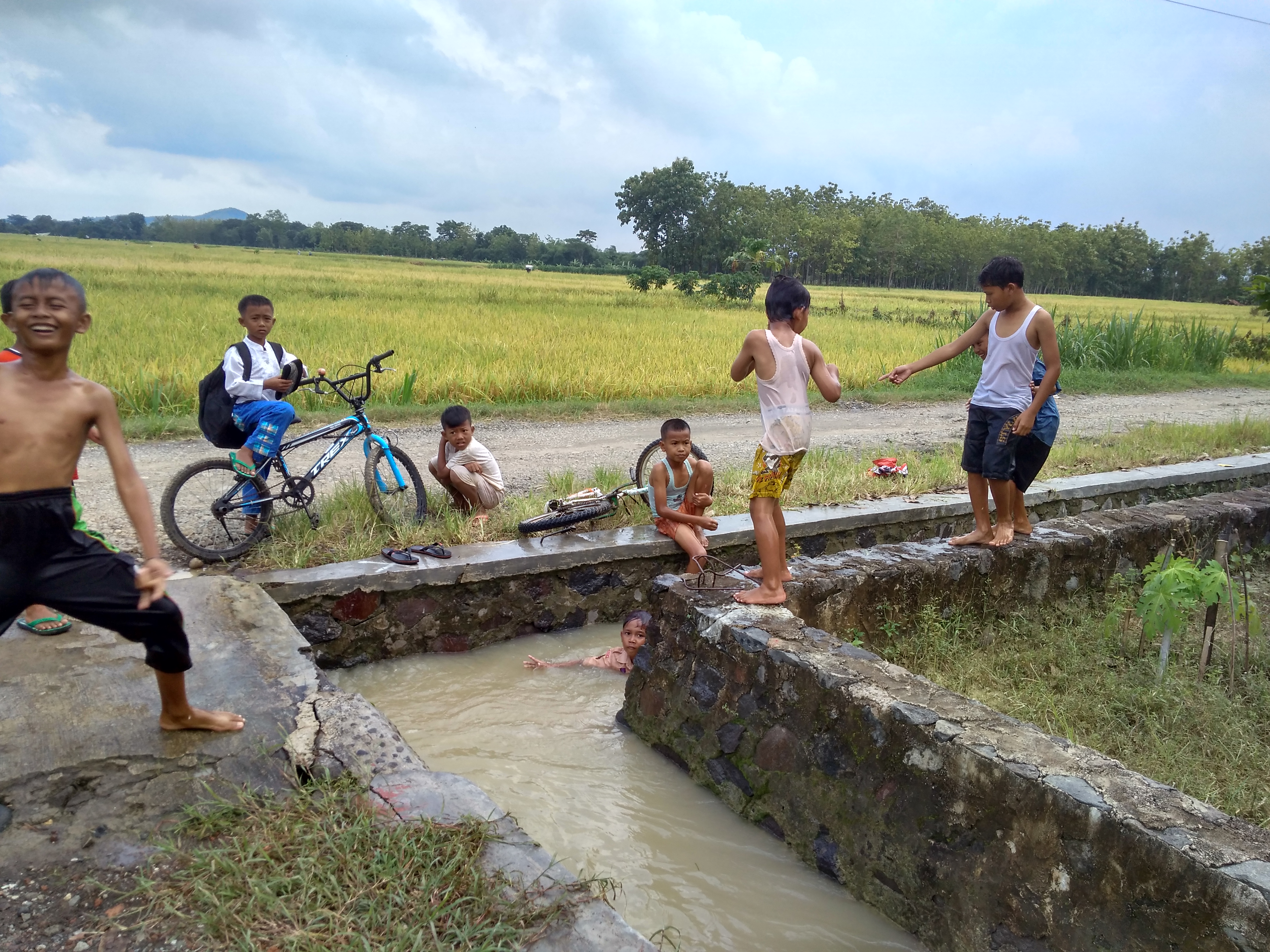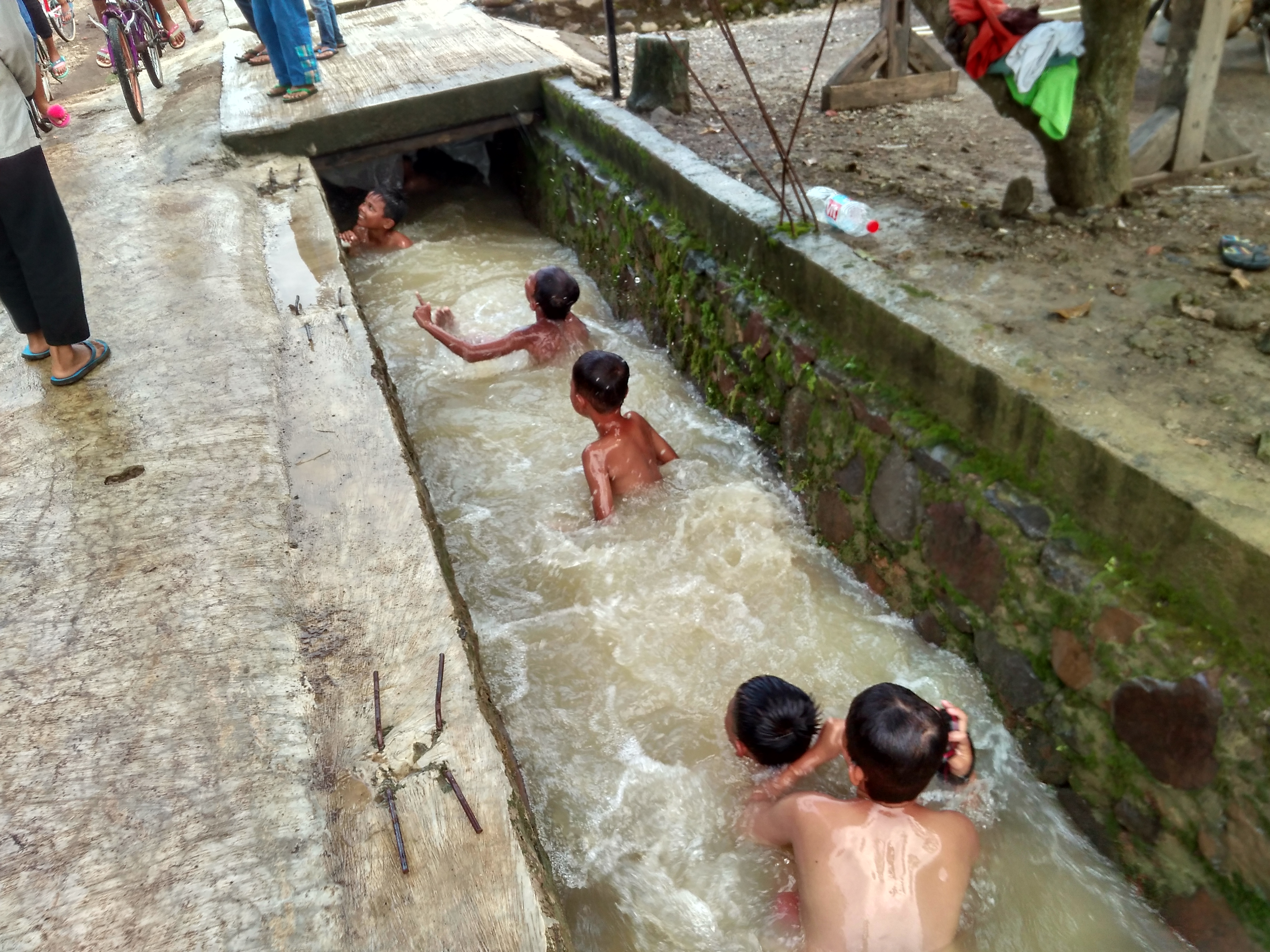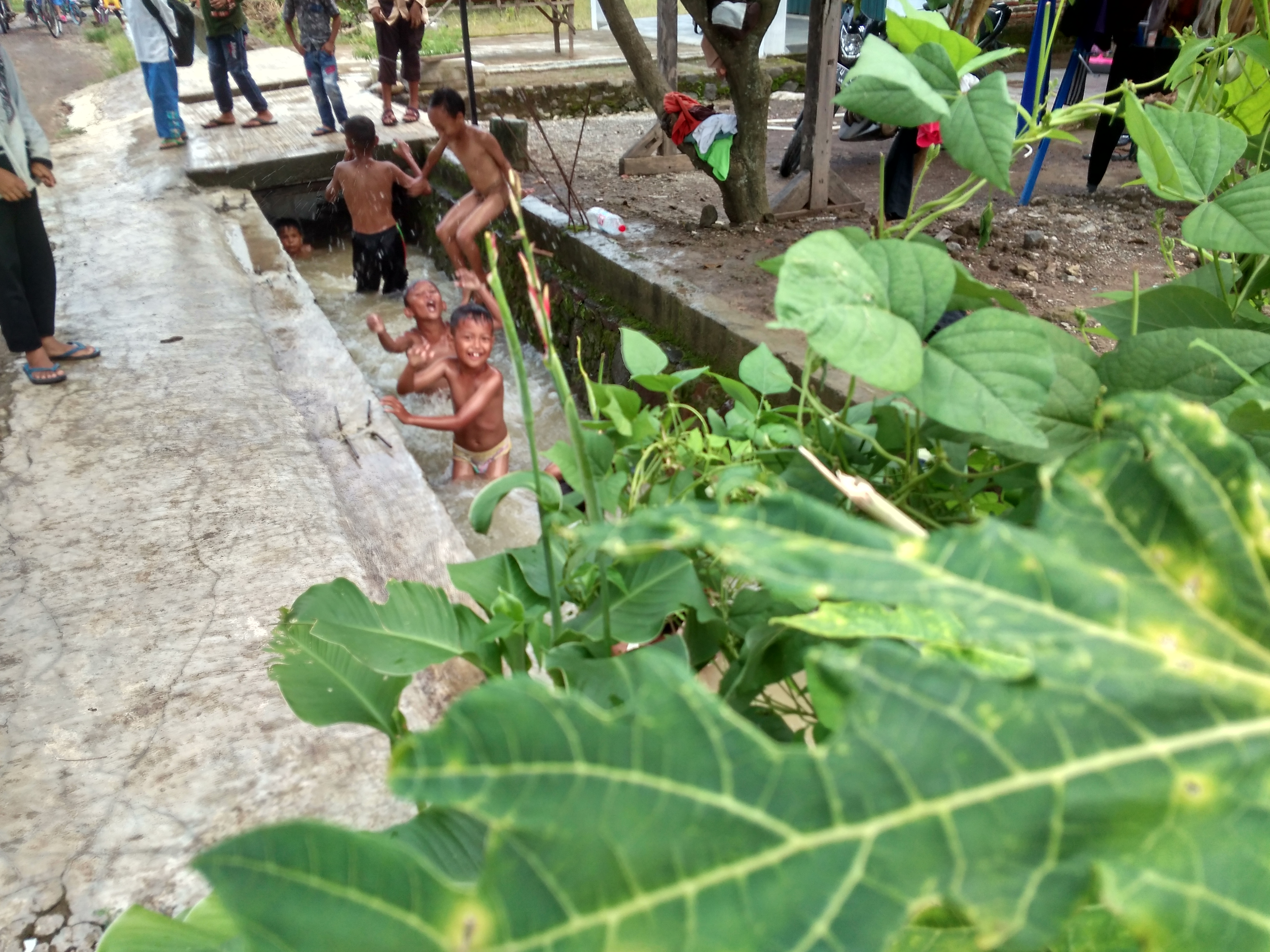 Di saat itu saya sedang meminta partisipasi dari masyarakat, bersama anggota karang taruna dan perangkat pemerintahan desa Cikakak untuk mendonasikan korban banjir di wilayah Brebes. Secara tidak sengaja melihat anak-anak berwajah polos bermain dengan air.
