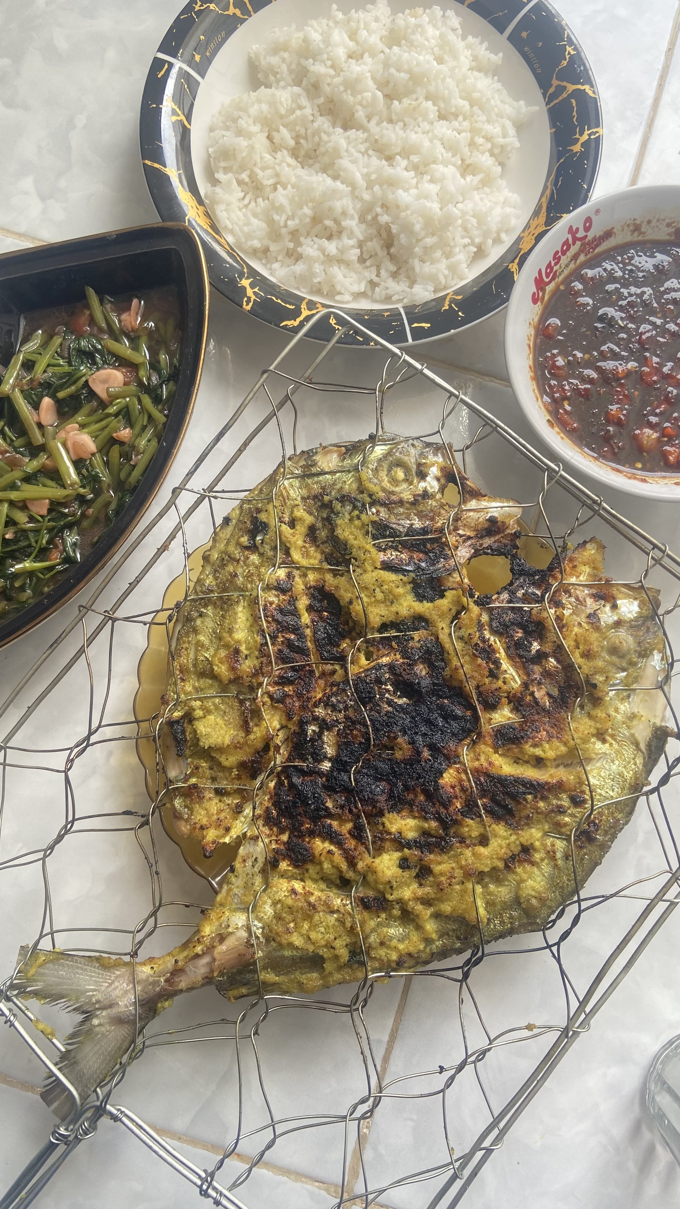 Baiklah ada 2 menu utama yang saya masak hari ini yaitu ikan bakar bumbu kuning dan tumis cah kangkung, enak banget dimakan pake nasi hangat dan yang pasti nya bikin nambah nasi