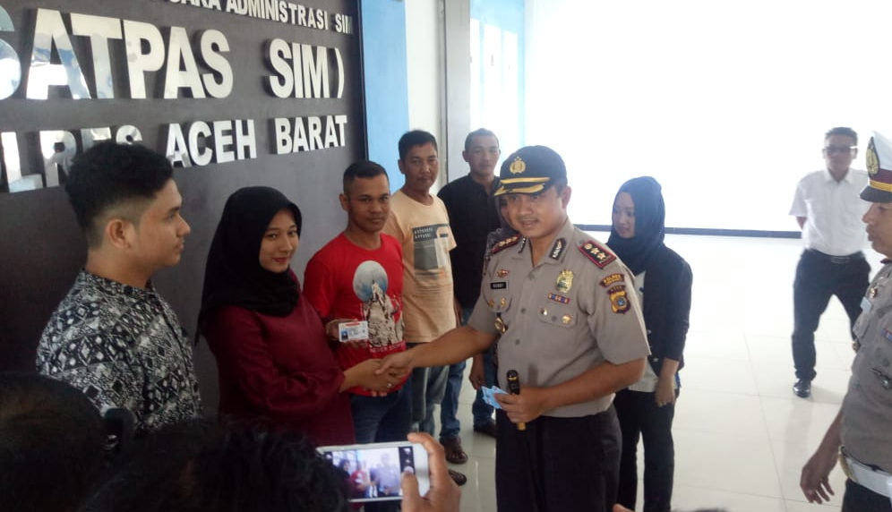 Sembilan warga Aceh Barat yang lahir 17 Agustus dapat SIM Gratis dari Polres setempat. lima warga itu Dianmas Santosa, Agus Fauzi, Muktar dan Eko Firmansyah. diserah lansung oleh Kapolres AKBP Bobby Aria Prakasa.S.IK di Meulaboh pada tangal 16 Agustus hari ini.