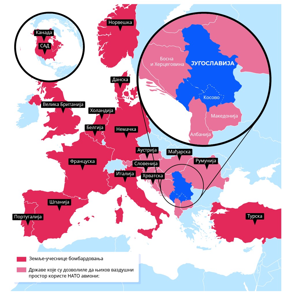 In pink: The countries which allowed NATO planes to use their airspace