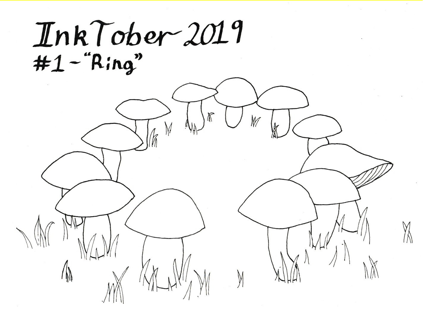 The first prompt for Inktober 2019 is "ring". At first I thought just draw a normal plain ring, but then decided I'd do a fairy ring instead. No fairies though...