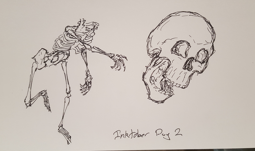 Inktober Day 2 - A Skeleton throwing his own skull.