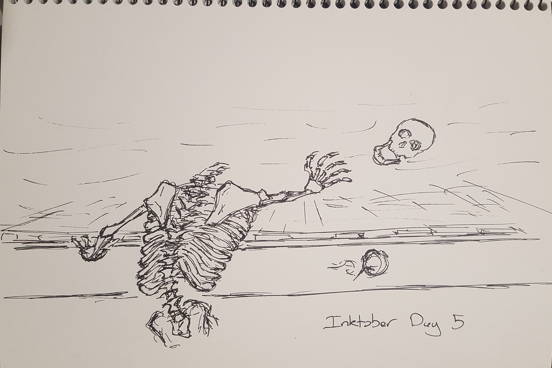 Inktober Day 5 - Skeletons make mistakes tostantastic (59)in #inktober • 7 years ago Sequel to day 4's the continuing tribulations of this skeleton dude. Hopefully the perspective conveys well enough. man shoulder-blades are fuckin weird. #original #sketch #skeleton #artzone