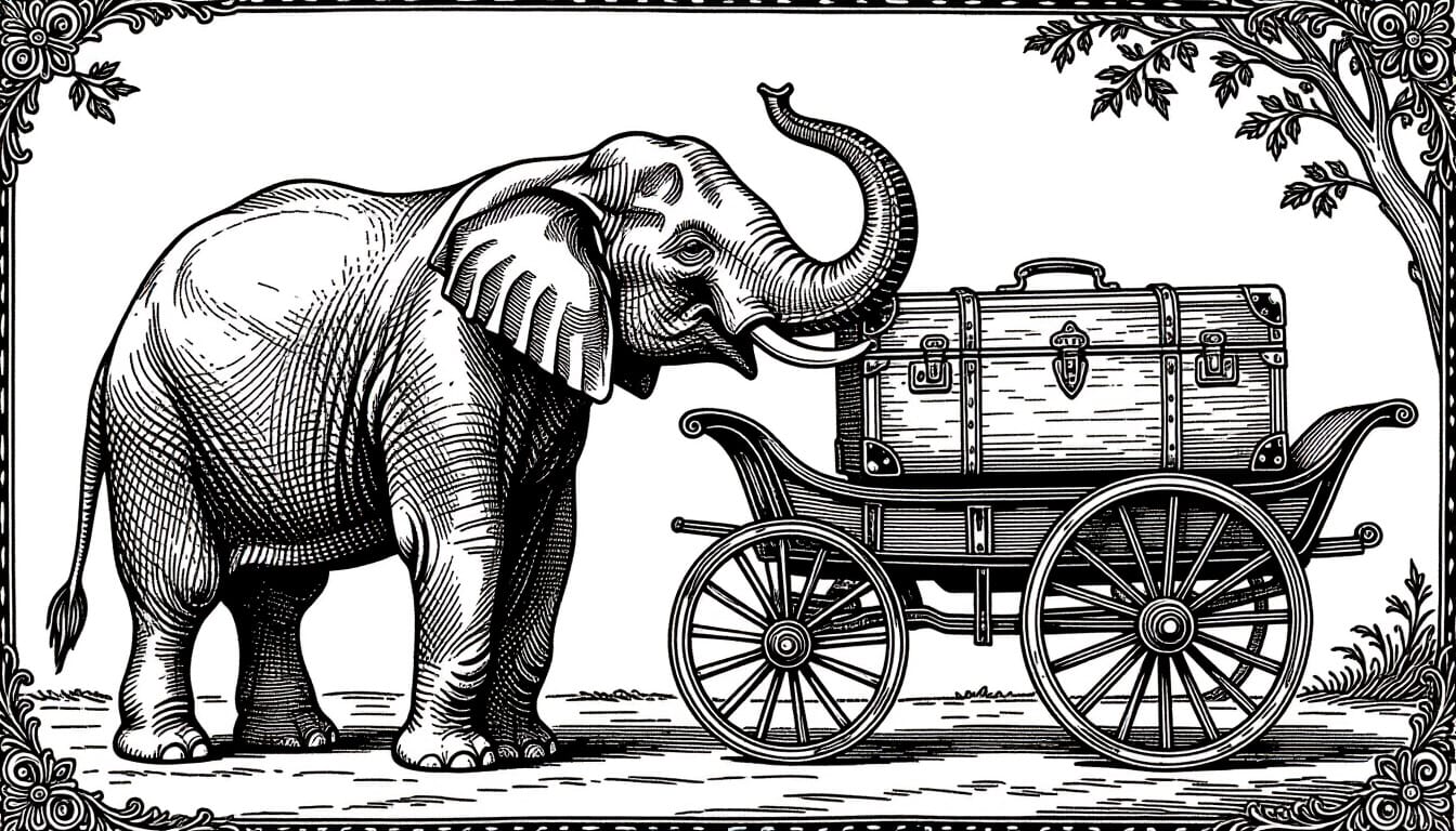 The 14th inktober prompt is trunk. I generated an image of a an elephant using its trunk to put a trunk on a carriage.