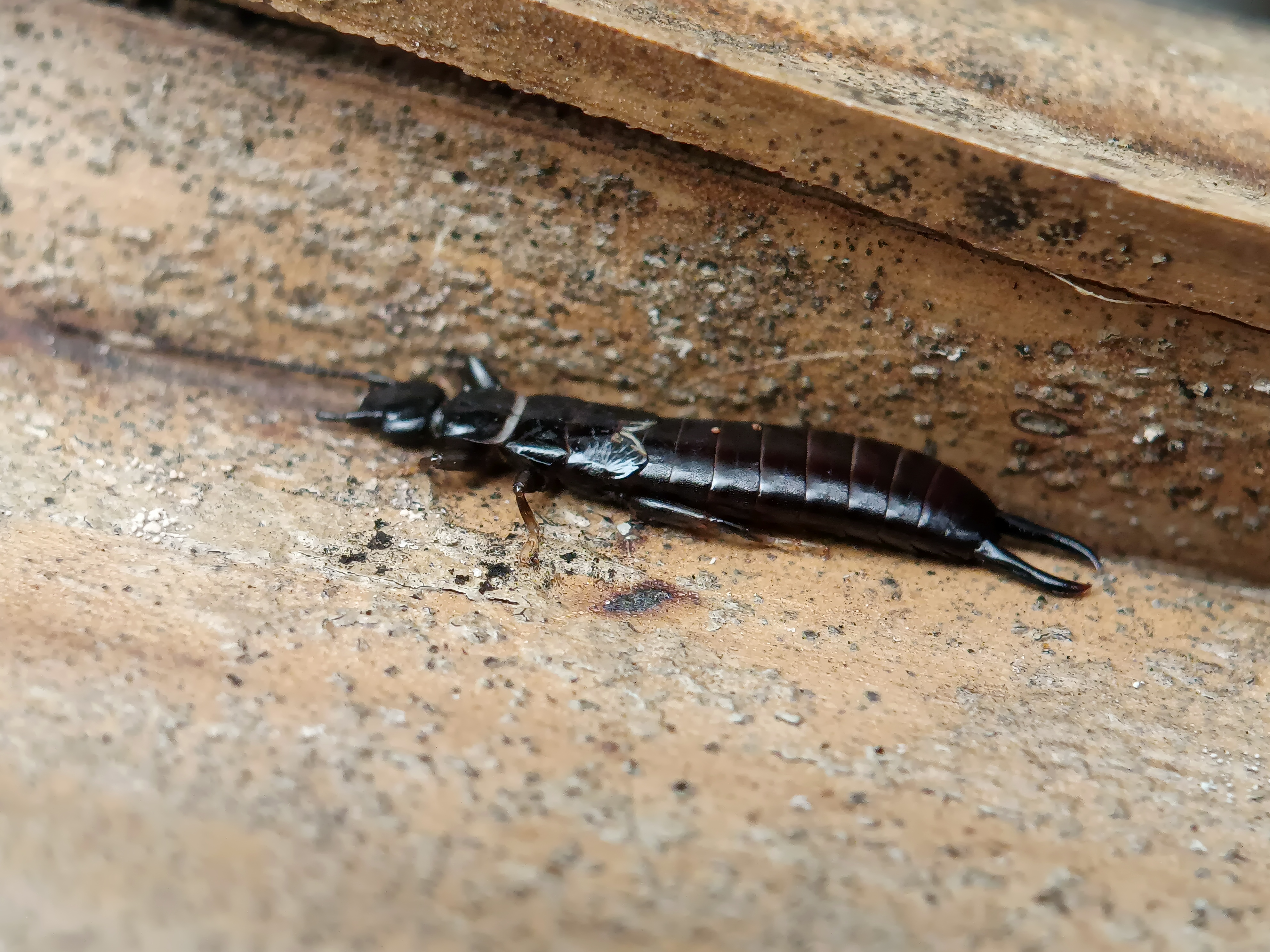 Okay, in this post I will share some pictures of a very unique insect, in my area many people call this insect earwig, but according to the information I know this insect is not dangerous to humans, but with its appearance alone we are a little scared when we see it, this insect has a slender body and has pincers at the end of its abdomen, and at first glance it looks like a scorpion. I managed to find this insect in my garden, precisely under a pile of coconut tree fronds.