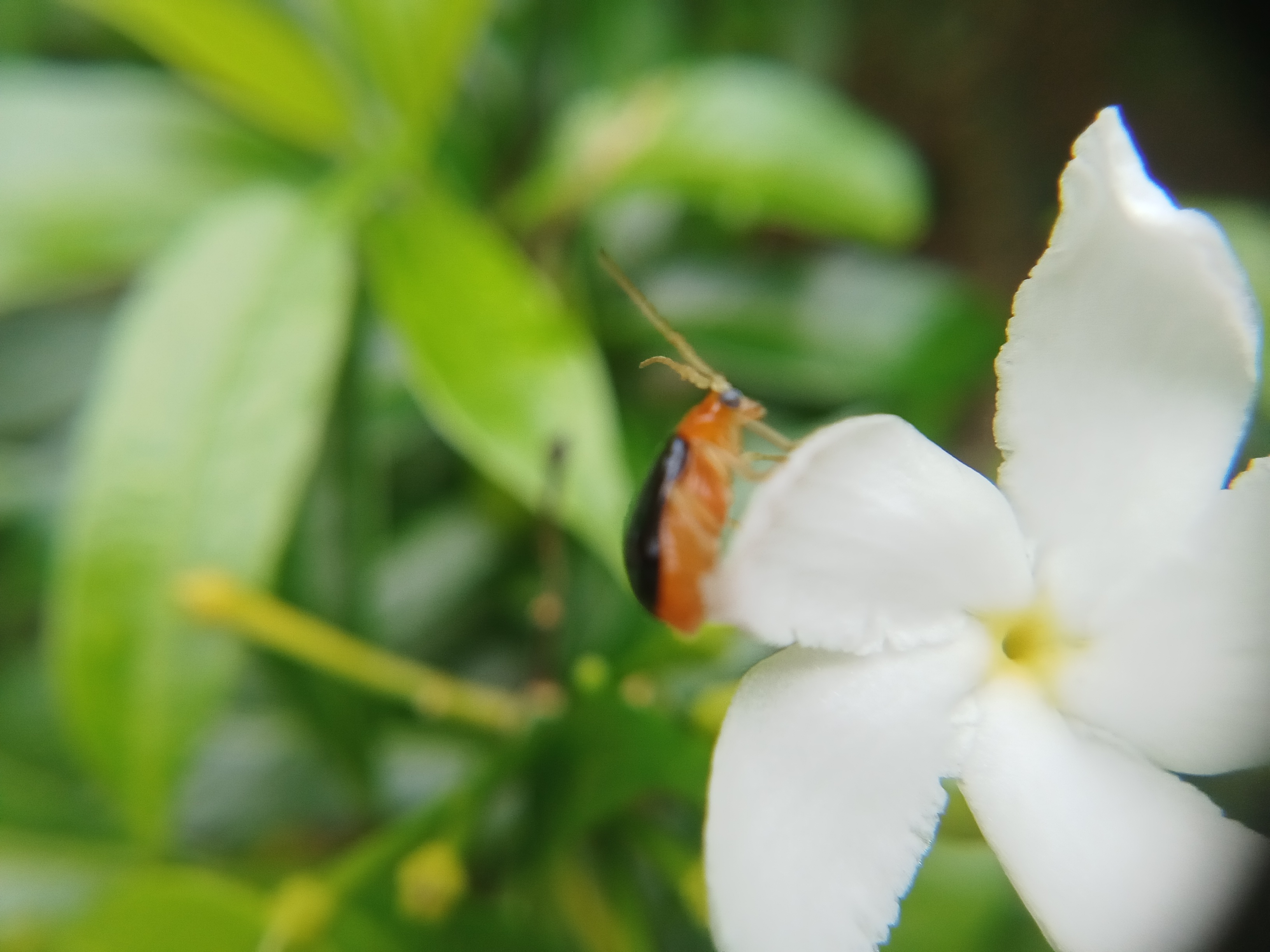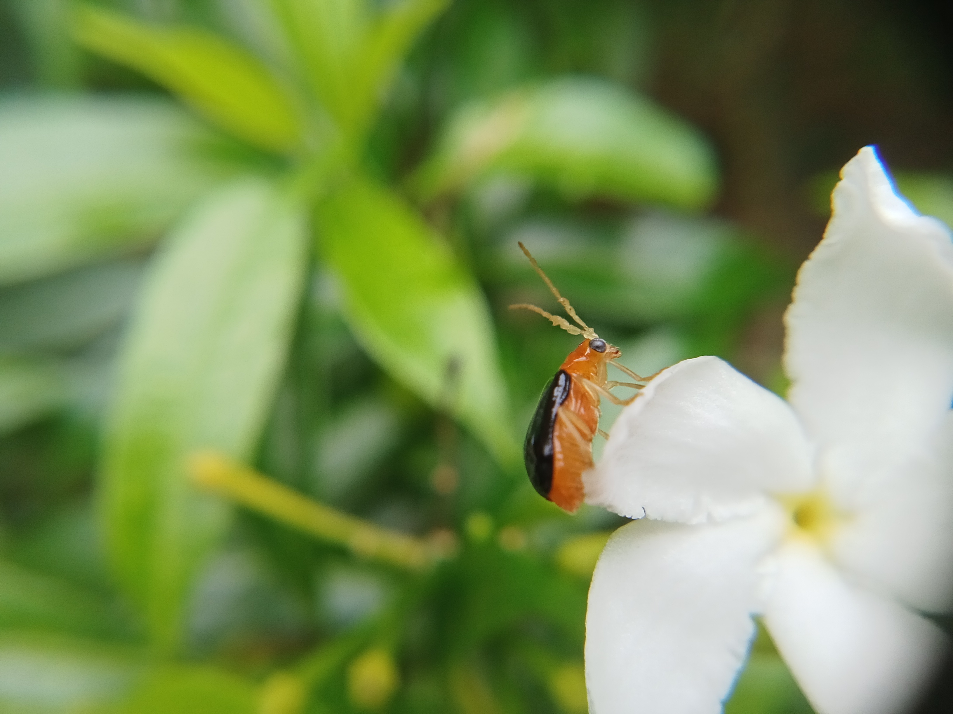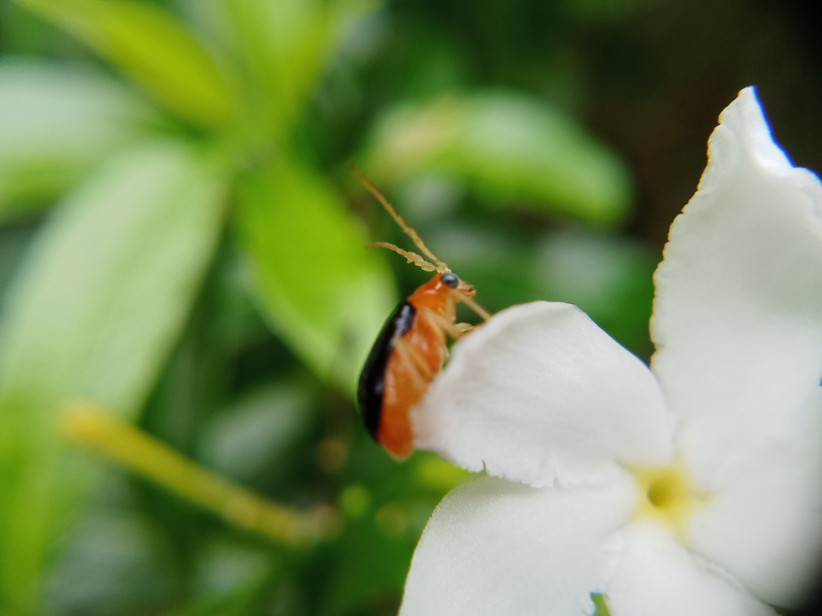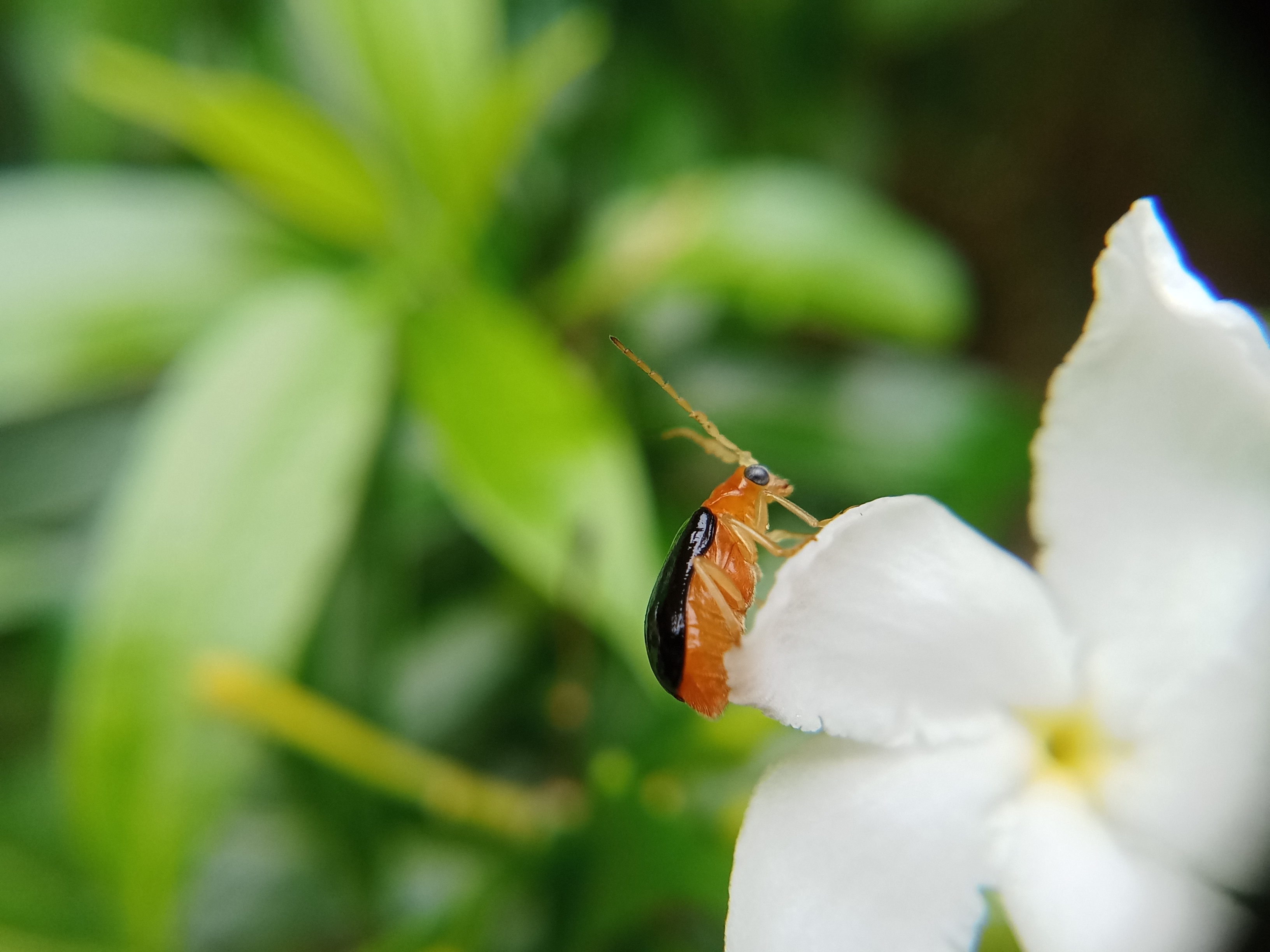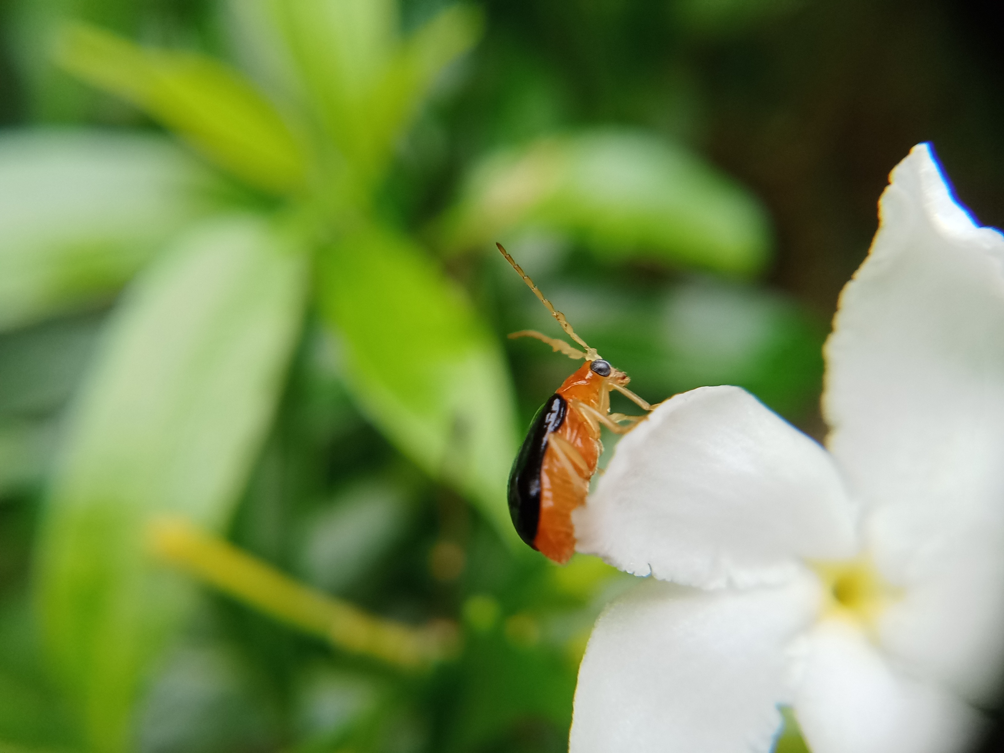 Inilah seekor kumbang oranye yang sangat cantik. Hewan jenis insecta ini suka sekali berada di sela-sela tanaman hias untuk mencari madu tanaman.