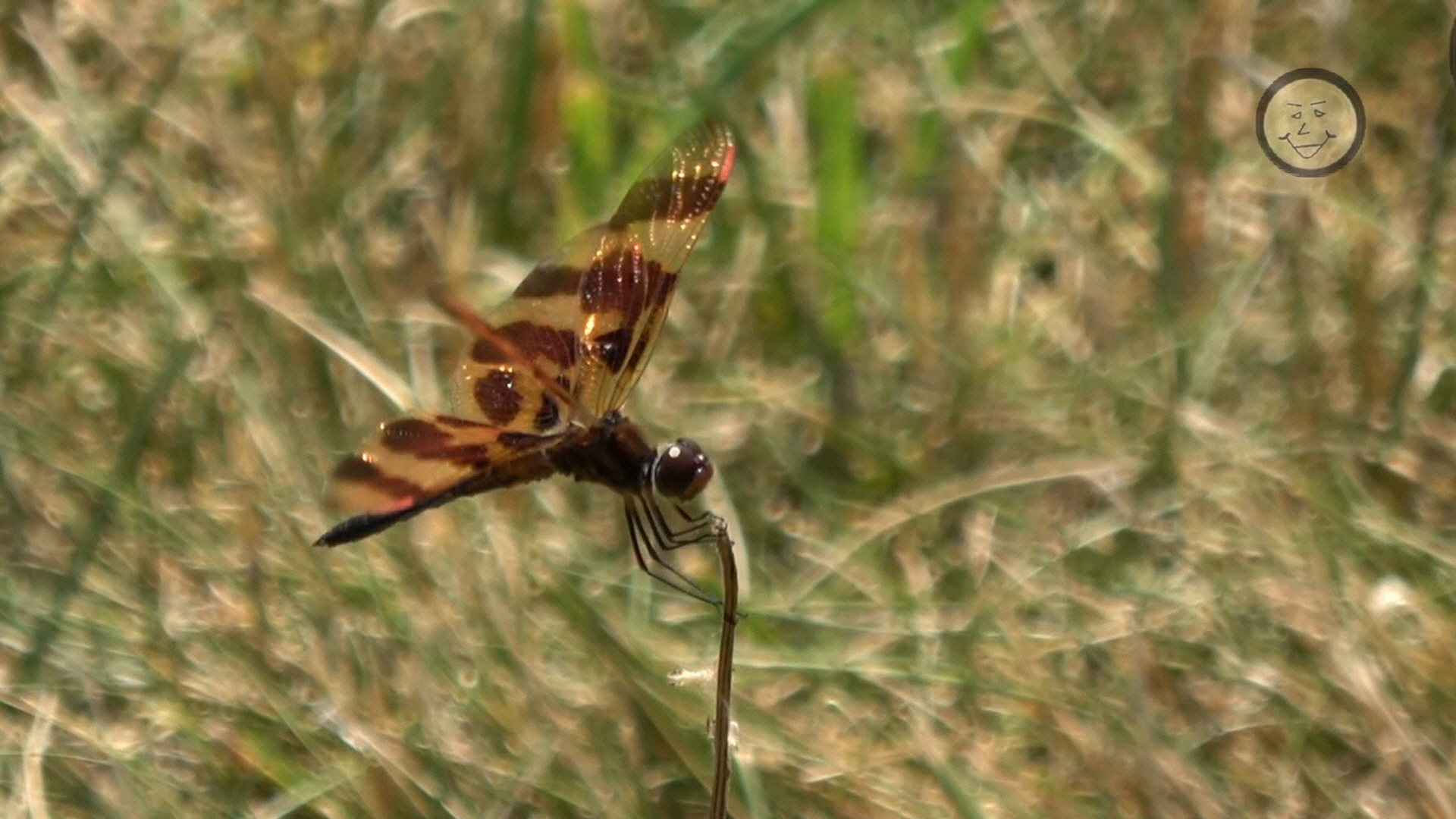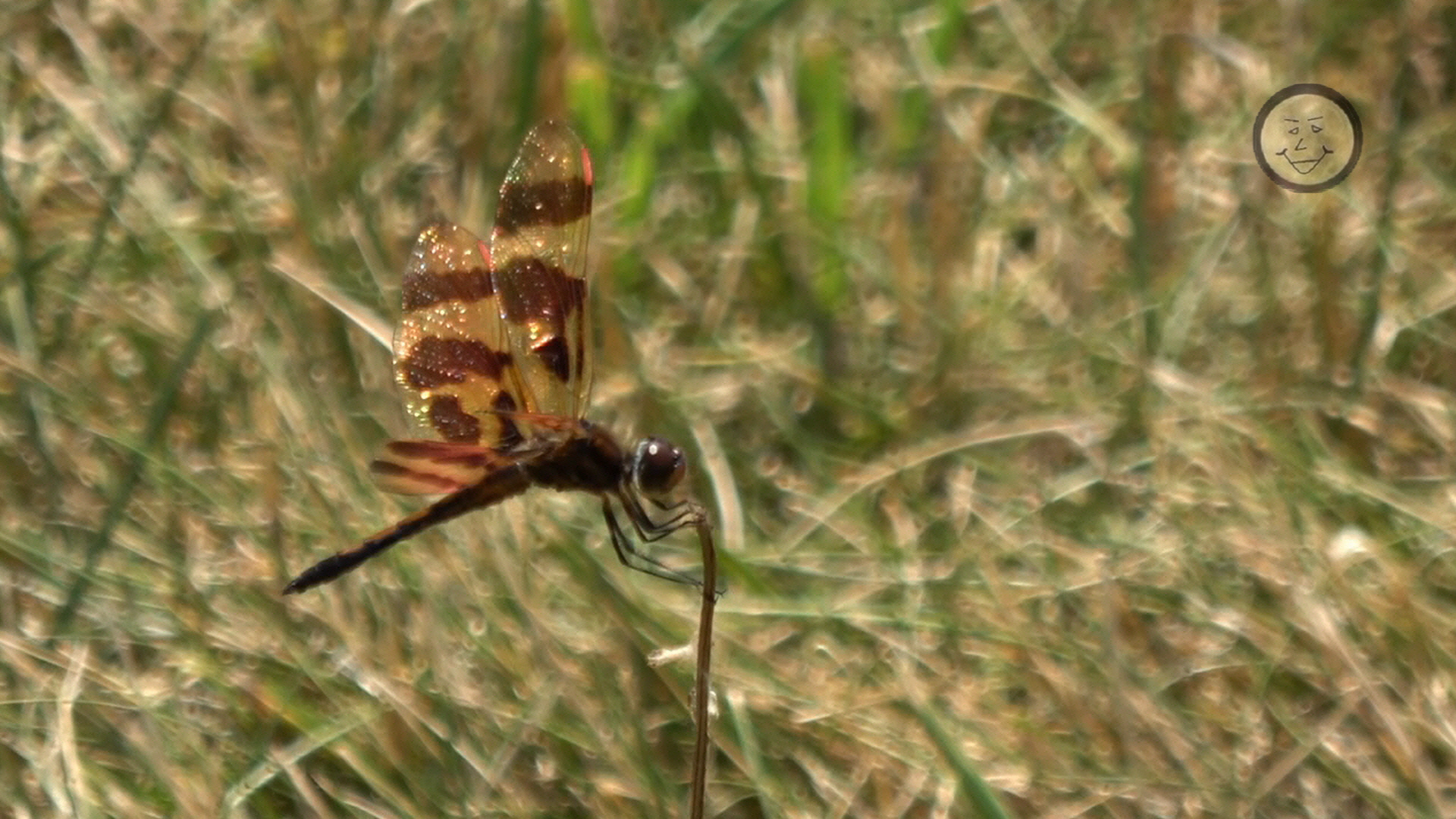 The dragonfly in my video seemed very interested in this particular stalk sticking out of the ground. Probably because it gave me the best view. It keep taking off and landing on the same one. Over and over. I filmed it for a while. Unfortunately, the dragonfly was out of focus for most of the footage. Luckily, I did get a few good seconds. Enough to get a couple of good still shots and make some nice slow-mo to put at the end of the video.