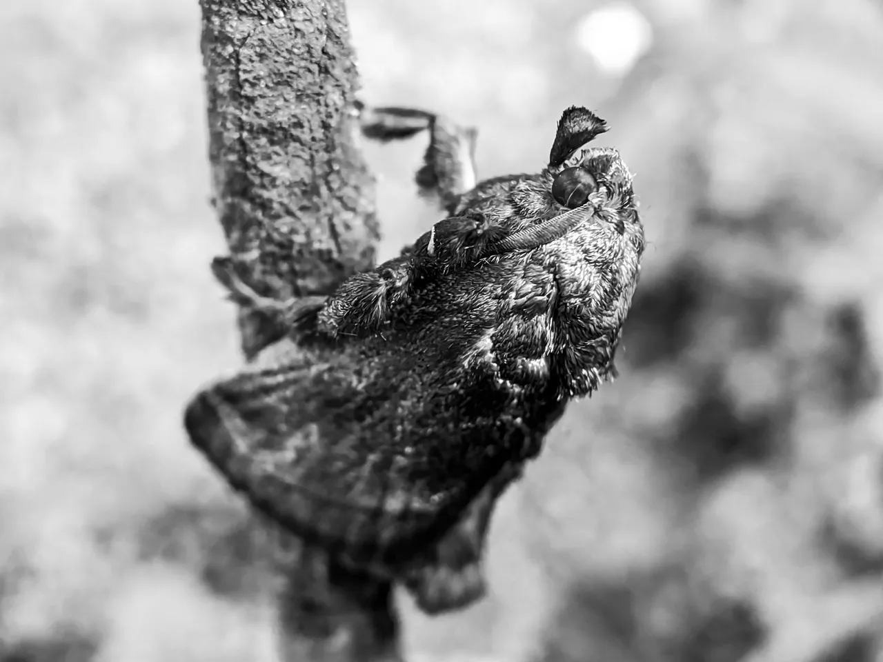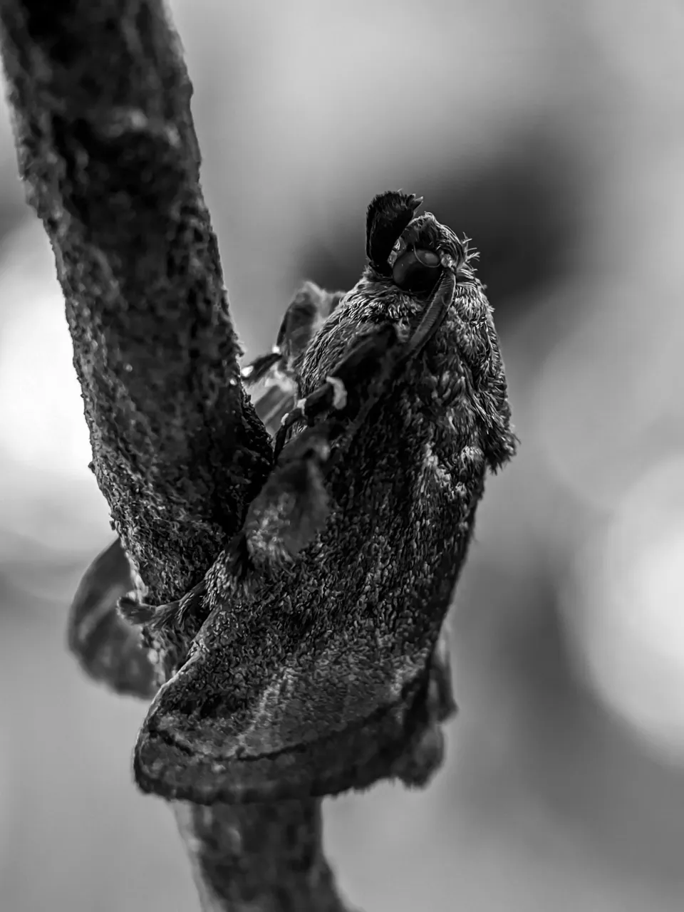 Towards the late afternoon about three days ago, unlike usual, one of the small-eyed Sphinx moth insects was fast asleep. Their usual habit is to sleep from the morning until late morning, which is very unusual for me because I rarely see this species of moth sleeping soundly in the afternoon.