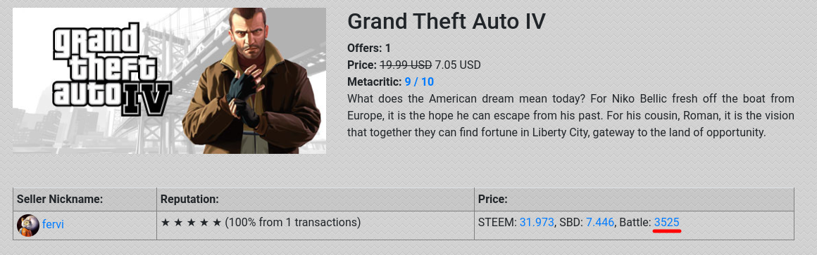 We decided that in order to buy a game using the BATTLE token, the seller must enable the option in the options. Then the products sold by the seller will appear in a special menu.