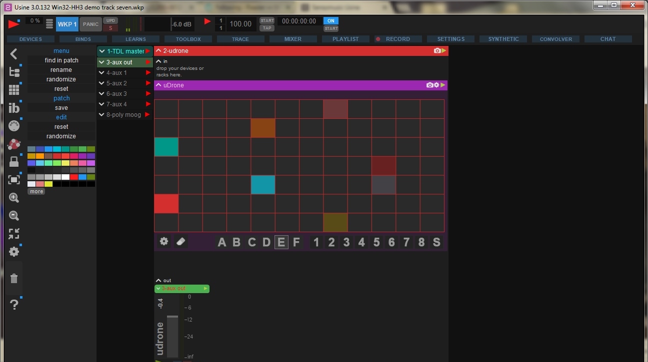 UDrone allows you to load a sample and then 'play' it using the grid where each row represents a different octave and each column is a note in the octave. This allows you to create a whole range of layered sounds from drones to clicky, artifact type sounds.