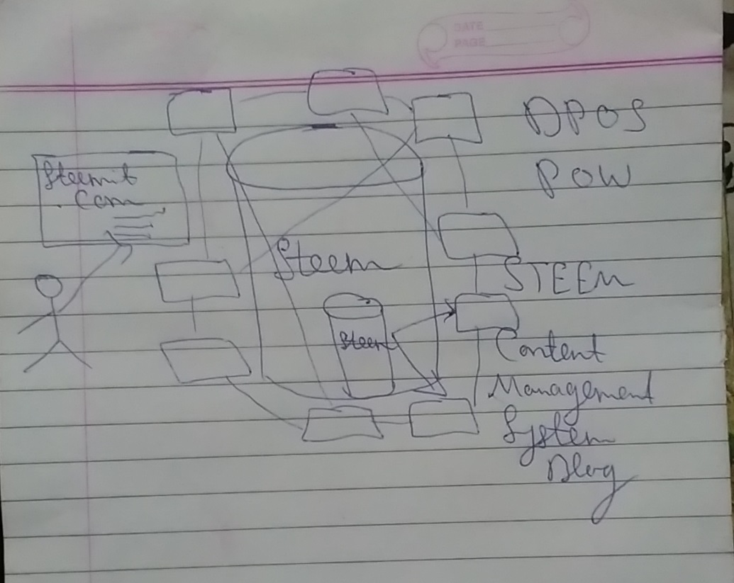 The bigger cylinder shows in above diagram represents data base structure .i.e steem and along with it the application steemit.com provides two things one is steem (the cryptocurrency) shown as small cylinder in diagram and second is content management system and this cms offers blog post, comments