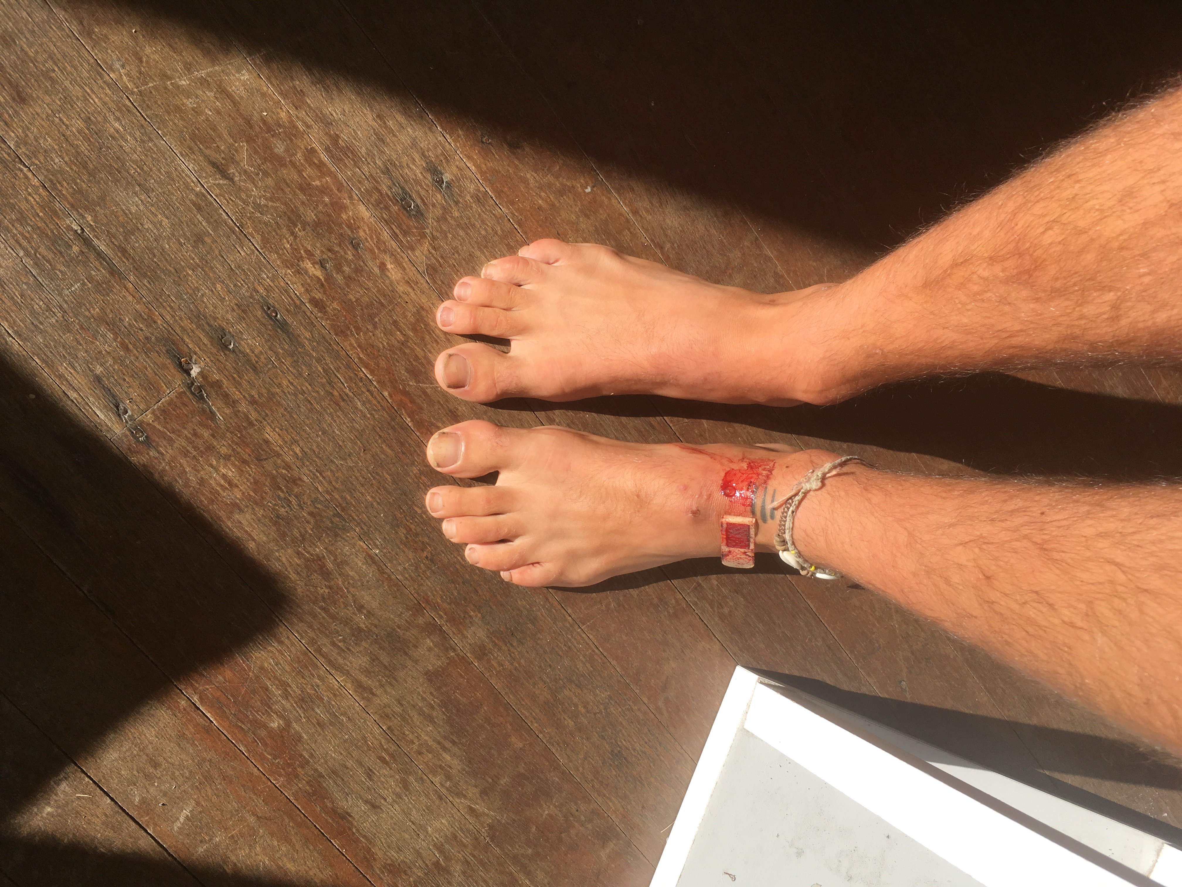 5 minutes later and non stop pissing out of blood I couldn't manage too walk at all. Thought id see how it felt tomorrow and went too sleep. Woke up with the same feeling ( no movement) so I jumped in my car and dangerously drove too the hospital barely pushing the clutch in with my injured foot.