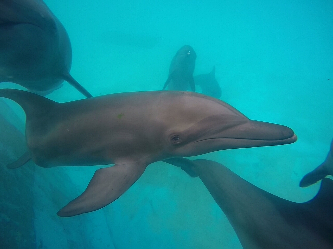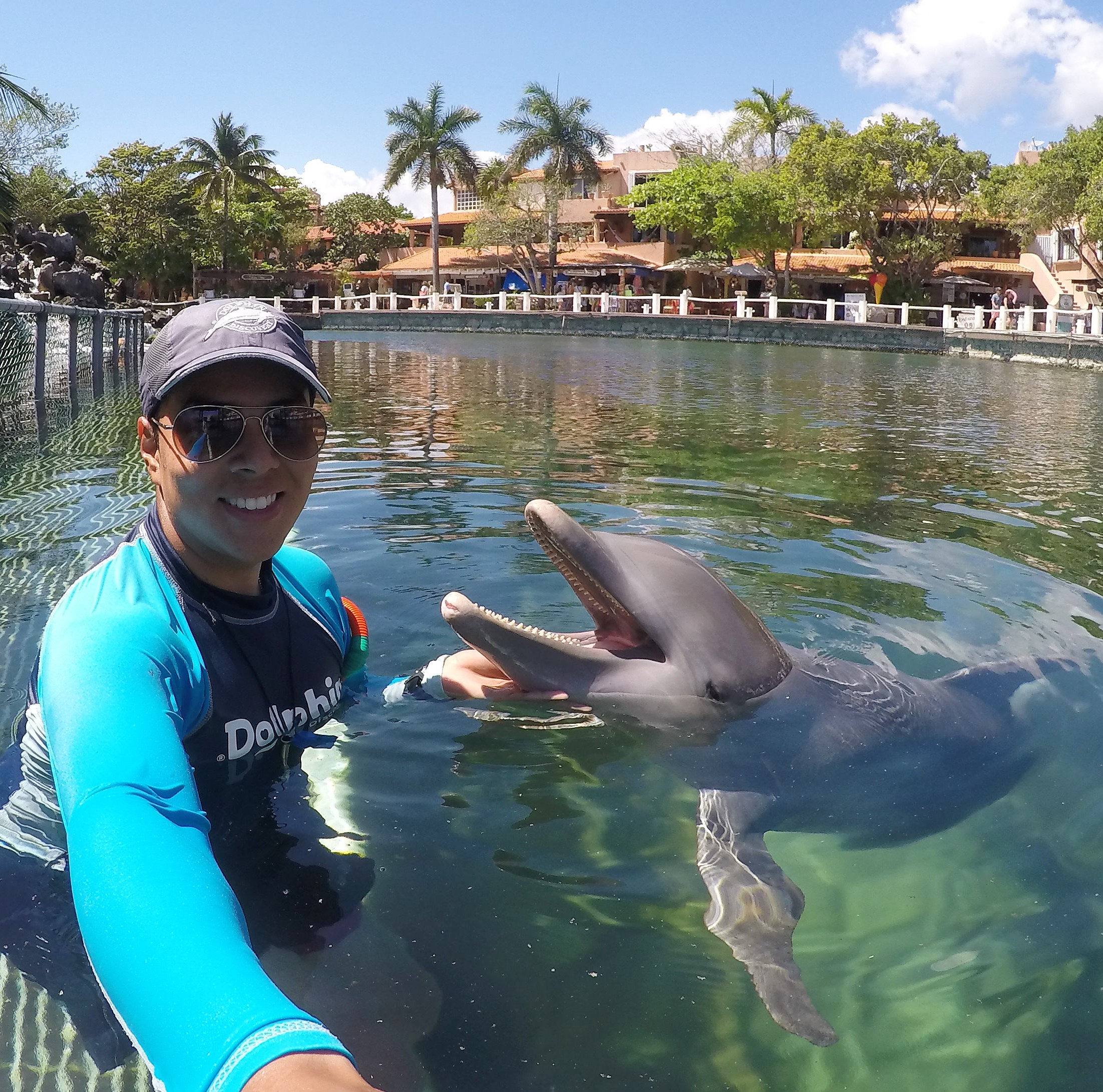 Ahora, quisiera detenerme un momento en esta foto que he tomado en Dolphinaris de Cancún, ya que, una de mis mayores experiencias ha sido trabajar con estas magníficas criaturas: los delfines.