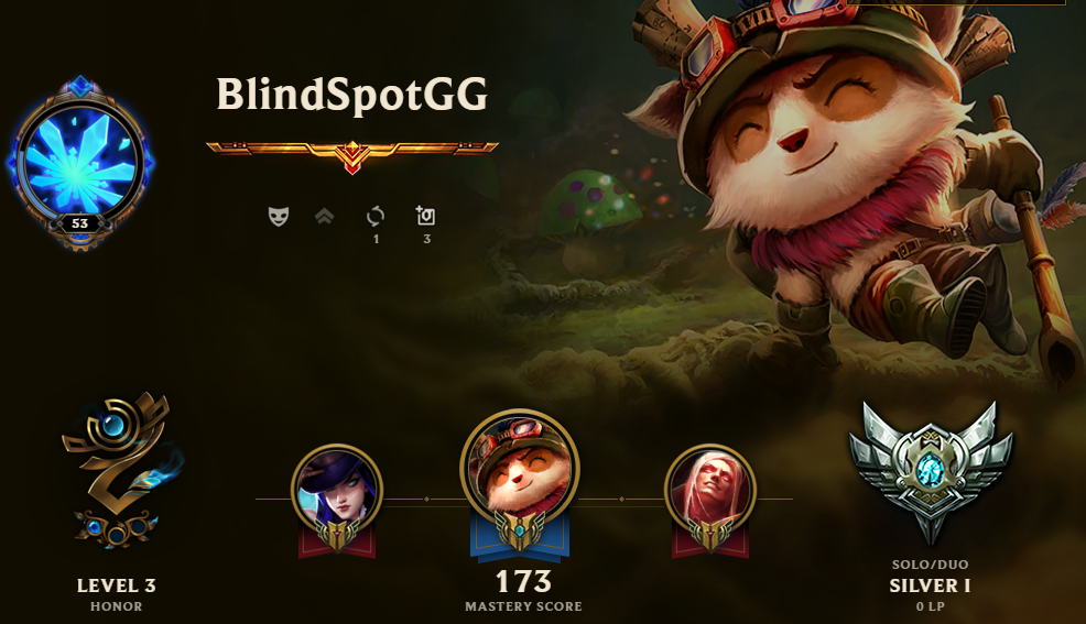 I am BlindSpotGG in the League of Legends. I started gaming as soon as I got my first PC or even sooner if you take into consideration TV games :)) I've been playing LoL for a few years, even though this account is not so old. Before playing League of Legends I started with Dota (one, of course, by then there was no Dota2). To be honest I still like more the graphics of Dota 1 so you can say about me that I am an old man who does not adapt easily to changes.