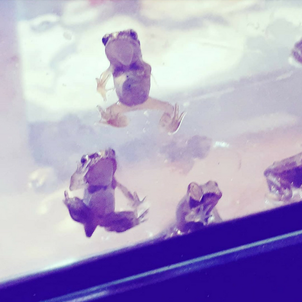 ● F - Frogs. We have a few Rana Temporia which we've grown from spawn, once they're at a stronger stage we will release them so they can jump free and wildly with their wilder frog buddies. We initially saved them from a local pond/water are which was full of dirty baby wipes and junk. It wasn't being maintained and unfortunately now - a few weeks later its dried up and most of the other tadpoles perished. The ones we saved are gorgeous and healthy.