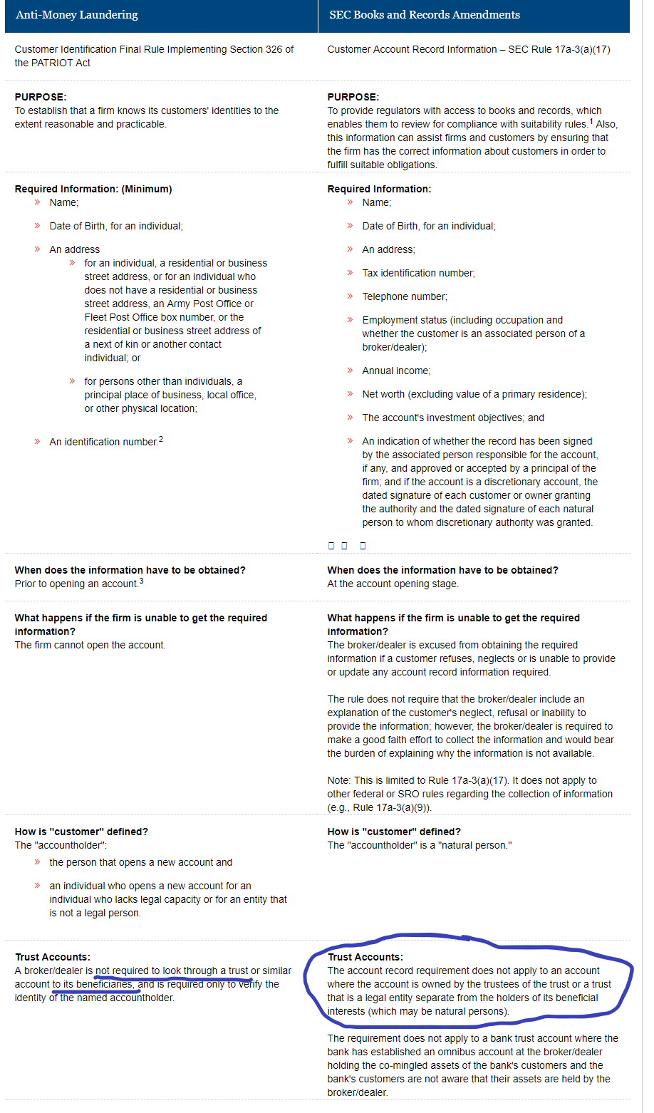 When studying the rules written by those with the Gold, I have discovered that Trust entities themselves have both a Public and a Private form. By the IRS’s own admission any banking entity, which the centralized crypto exchanges basically are, there is a requirement for the documentation of the “Ultimate Beneficial Owners” of any statutory entity. BUT for non-statutory Trusts that exist only in private contract form and are never registered with any State entity there is NO requirement to discover anything more than the name and address of the Trustees!