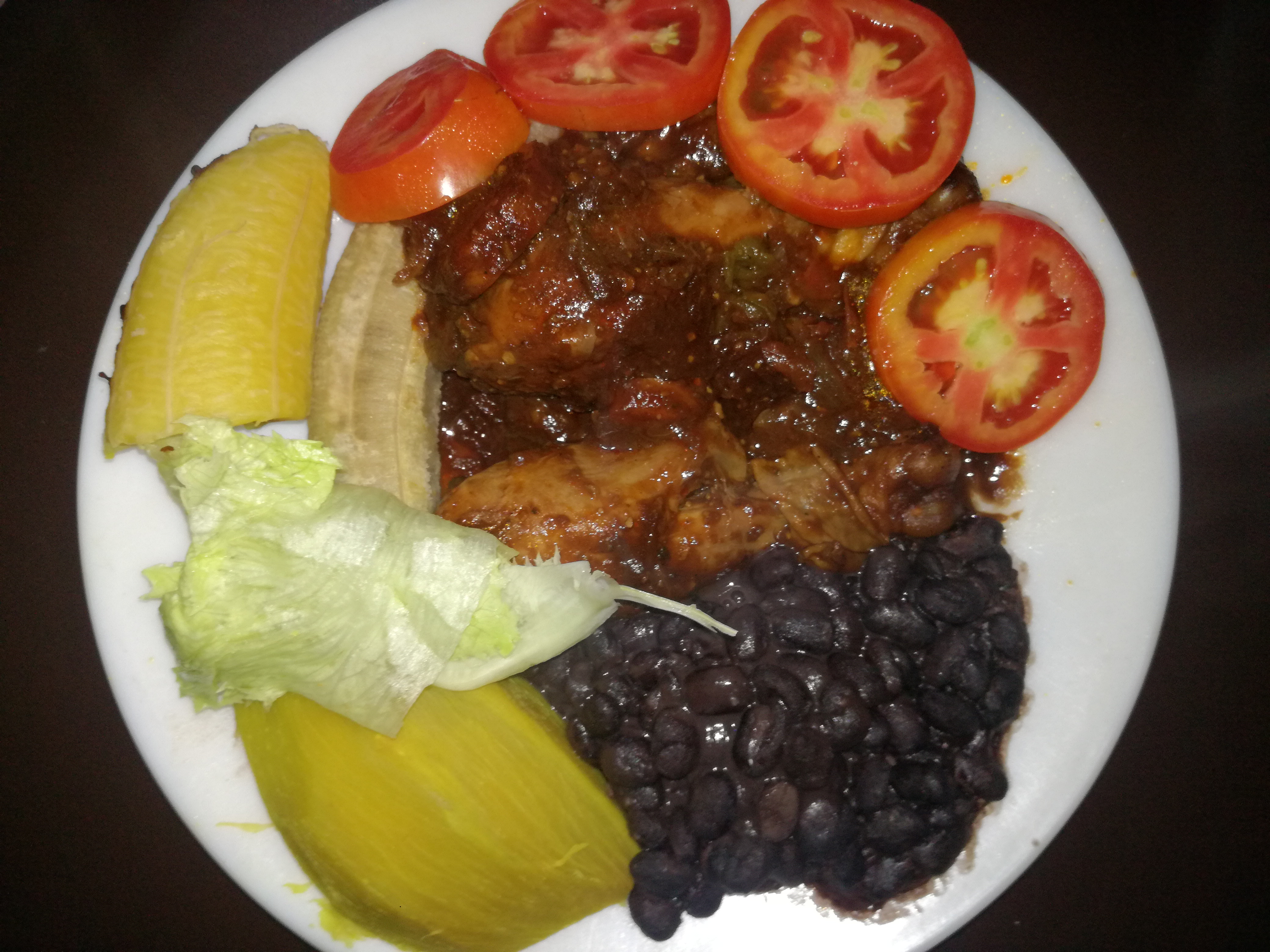 This is one of my favorite Dishes to make apart from the Jerk Chicken, if your wondering what ital food is its basically natural foods that are grown from the earth, as you can see in the picture there's 1 piece of sweet potato on the left we have 1 piece of lettuce 1 pieces of green banana and 1 piece of plantain. and to the right, we have black beans with 4 slices of tomato with the stew Chicken in the middle this dish is also good for those who are tired of rice and want to try something new.