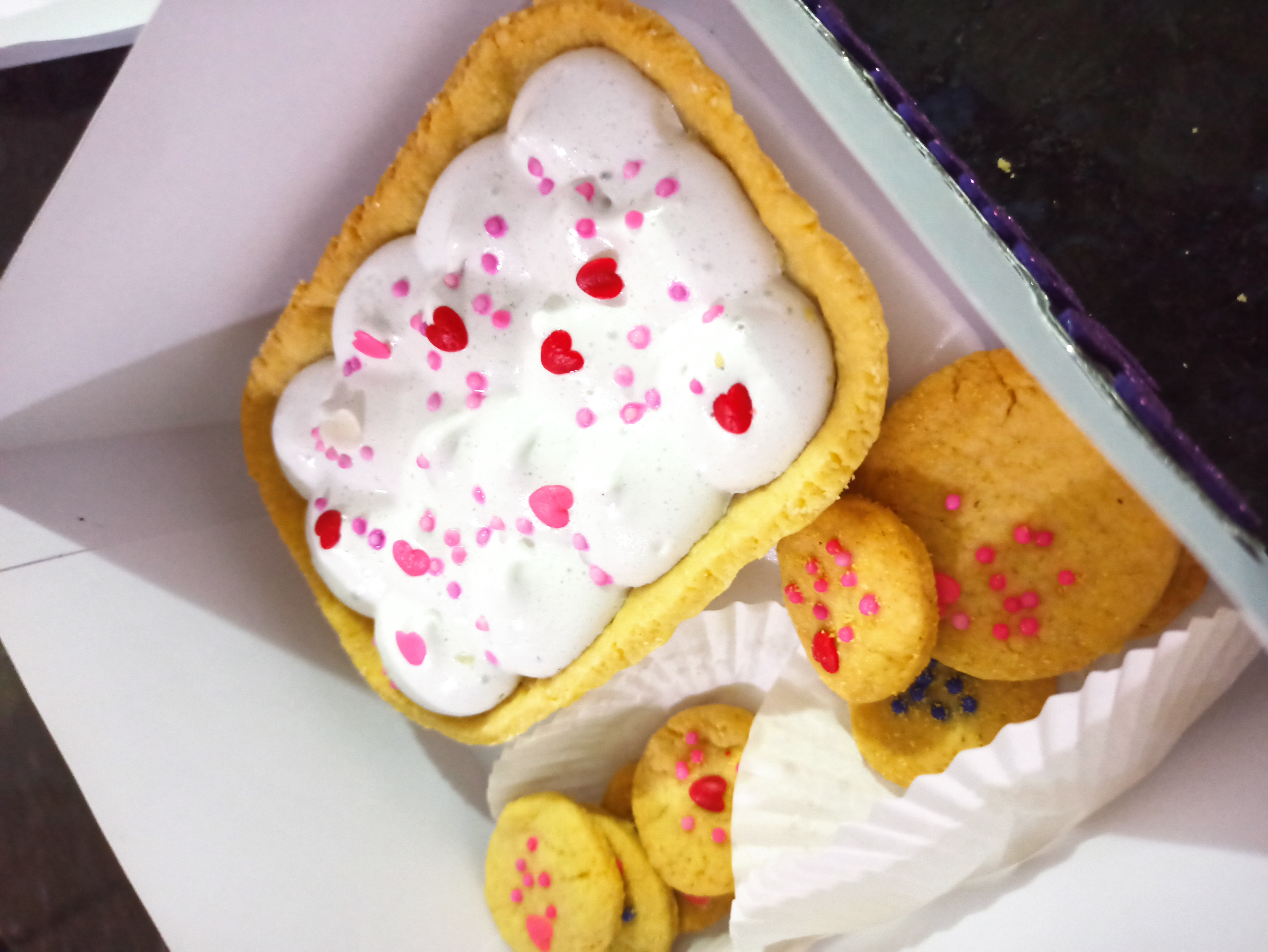 En su interior tenia un pie de limón que estaba super divino, junto con unas galletas de mantequilla que estaban muy ricas tambien, la cajita y la decoracion fue hecha por ella, lo cual me encanto.