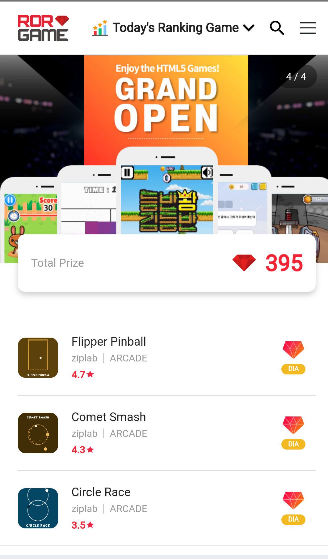 First game is Flipper Pinball and I won 3rd Rank, 11 Points and 9.6 Diamonds.